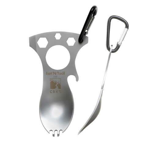 Gli utensili leggeri COLUMBIA possono essere utilizzati non solo come cucchiaio o forchetta, ma anche come cacciavite, chiave di montaggio o apribottiglie. Il set include un moschettone per il fissaggio all'attrezzatura o all'abbigliamento.