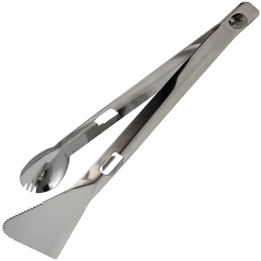 Pinze utilizzabili per grigliare, arrostire, friggere, servire, mescolare. Una volta separate, si ottengono due utensili distinti: un cucchiaio e una spatola/coltello. Lunghezza totale: 25,5 cm, peso: 93,5 g. Ulteriori informazioni