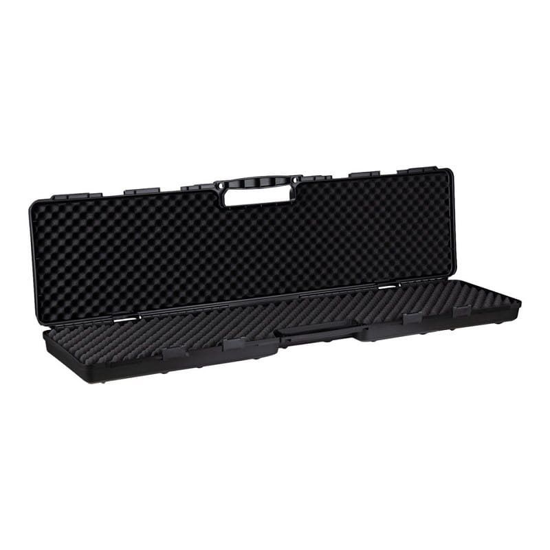 Valigia robusta e ben imbottita, progettata per il trasporto di armi lunghe. La valigia è realizzata in polimero resistente agli urti (IK08), impermeabile (IP55) e resistente alla polvere, con una robusta imbottitura interna in schiuma che protegge in modo affidabile il contenuto della valigia da eventuali danni. Le chiusure scorrevoli che fissano la valigia sono progettate in modo da non aprirsi nemmeno in caso di forte impatto. La comoda maniglia centrale ne facilita il trasporto. La valigia è progettata in modo da poter essere facilmente impilata, se necessario.