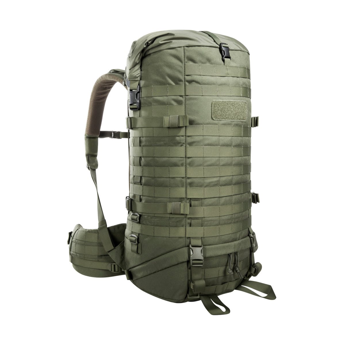 Lo zaino Base Pack presenta la struttura classica di uno zaino da spedizione con accesso superiore e inferiore e due scomparti separati. La base dello zaino è costituita dal collaudato sistema di trasporto V2 Plus regolabile in altezza con due rinforzi in alluminio e cinghie ampiamente imbottite. La cintura lombare può essere staccata e utilizzata separatamente come cintura da combattimento. Nella configurazione di base, lo zaino ha una capacità di 52 litri. Tuttavia, grazie al coperchio superiore regolabile in altezza e al lungo collare di accesso arrotolabile, è possibile aumentarla fino a 65 litri. Il coperchio può anche essere completamente staccato e l'ingresso arrotolabile può essere fissato in due diverse posizioni. Il sistema modulare PALS/MOLLE copre praticamente tutto lo zaino e consente di aumentare ulteriormente la capacità di carico utilizzando tasche e custodie compatibili in base alle esigenze dell'utente.