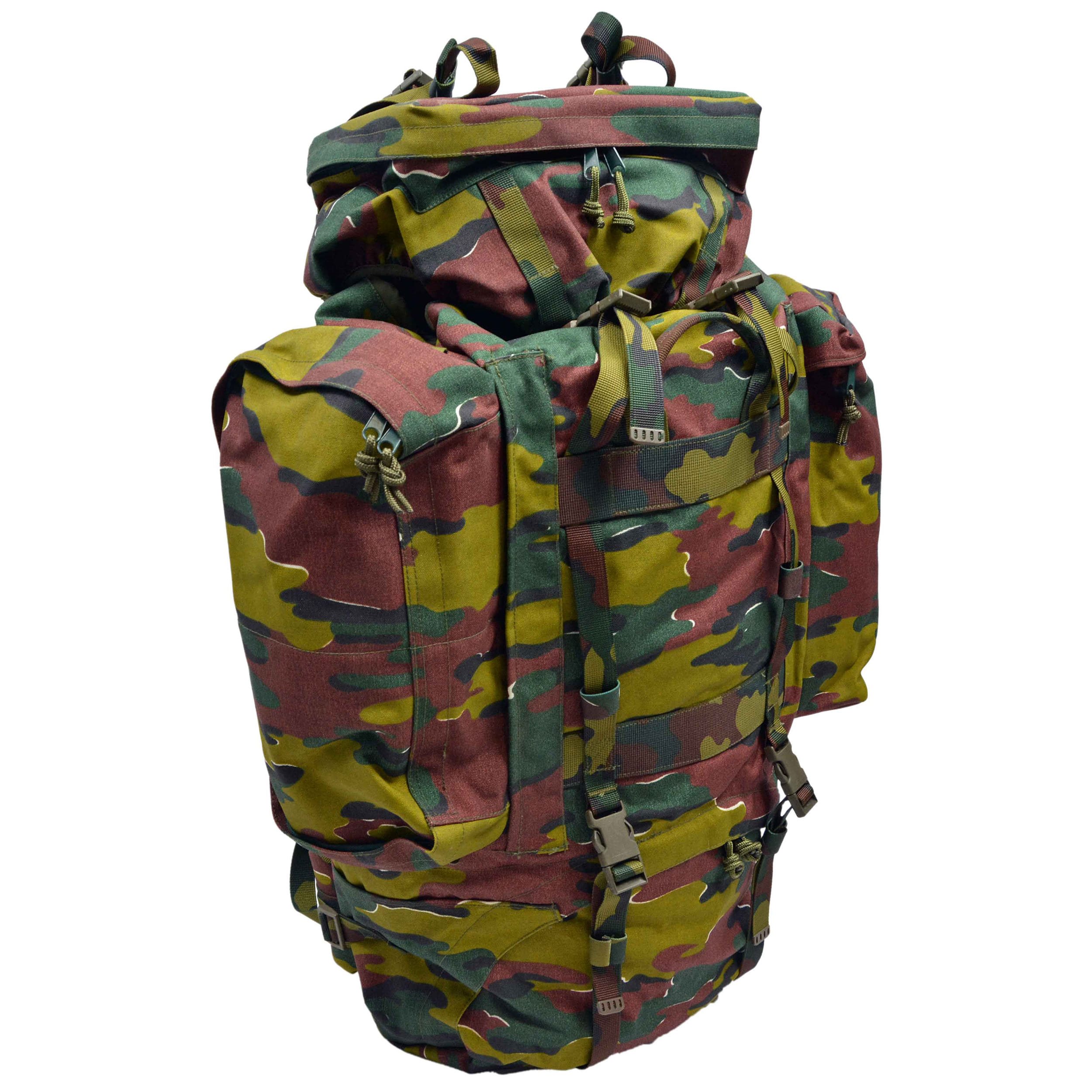 Zaino BERGEN originale utilizzato dall'esercito belga. Zaino completo particolarmente adatto per lunghe escursioni, dove la priorità è la grande capienza. Ampia tasca principale con chiusura a patta e fibbie FASTEX. Ulteriori informazioni