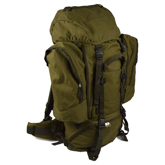 Zaino originale dell'azienda britannica Berghaus, utilizzato anche dall'esercito tedesco. Lo zaino è usato, ma in condizioni utilizzabili.
