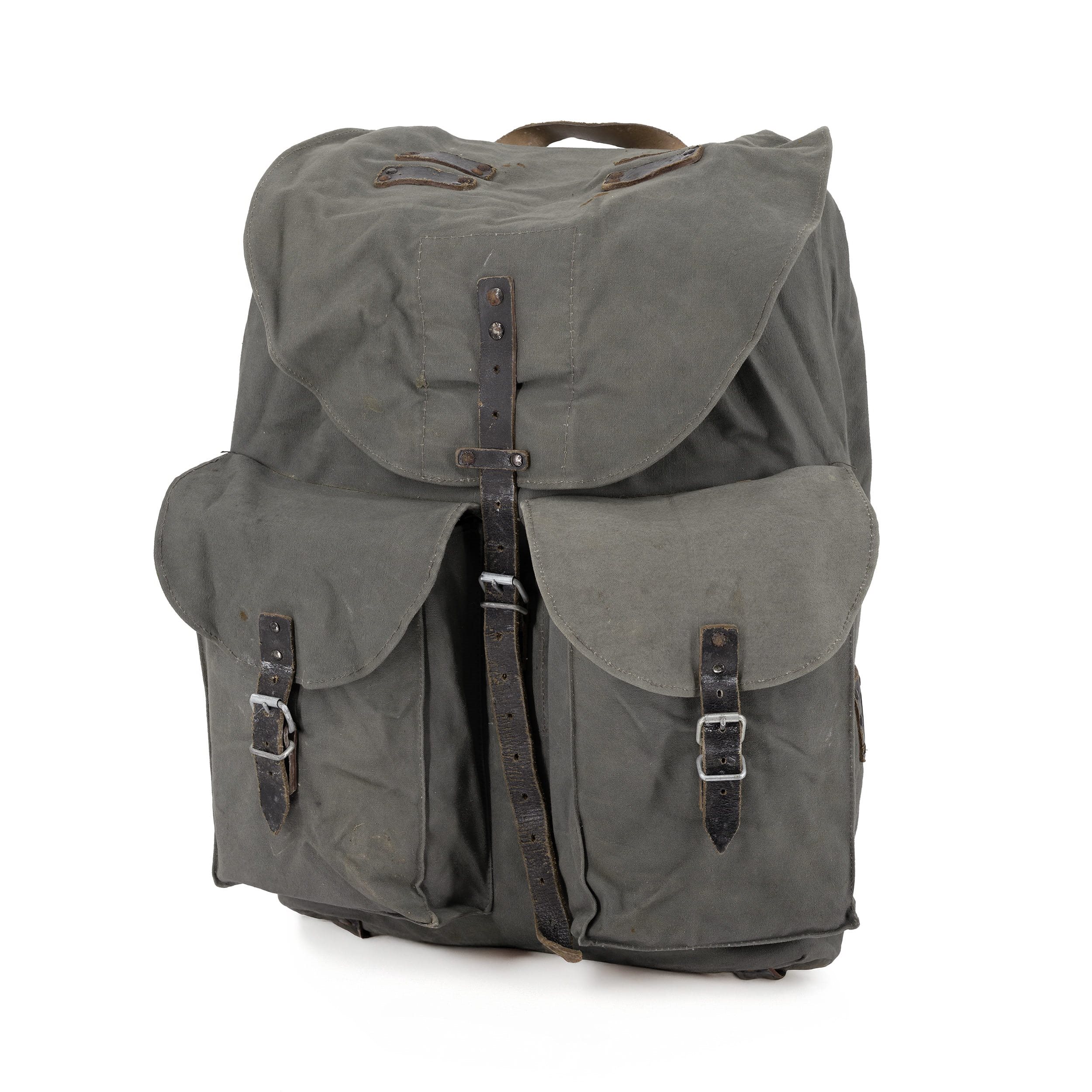 Zaino storico. Le condizioni corrispondono all'età, adatto per scopi collezionistici. Gli zaini sono usati nel dopoguerra. Si prega di notare che si tratta di un pezzo da collezione vecchio di decenni.