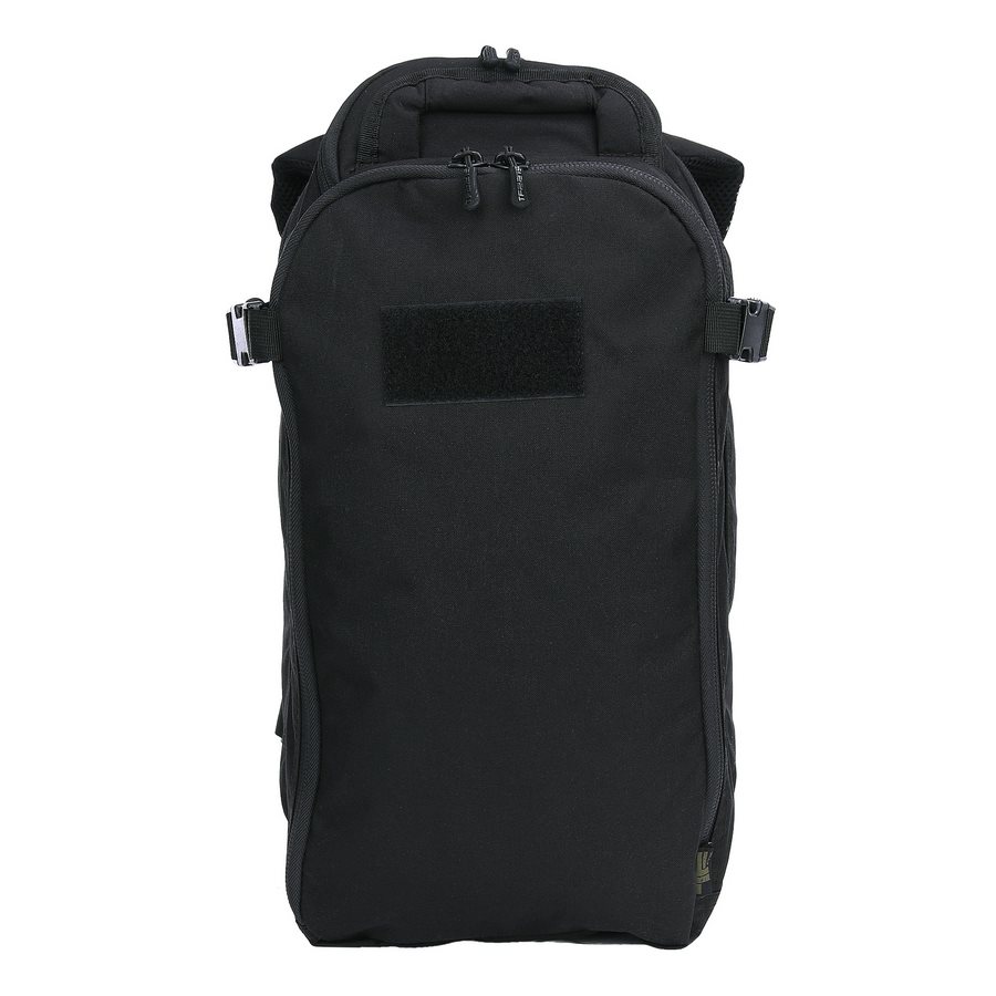 Lo zaino è diviso in due scomparti principali accessibili tramite cerniere a doppio cursore con tiretti. Nello scomparto anteriore si trovano tre colonne di attacchi MOLLE/PALS, completate da due strisce di VELCRA. Questa combinazione è ideale per riporre diverse tasche e inserti compatibili, che consentono di organizzare perfettamente l'attrezzatura per ogni occasione. Lo scomparto posteriore è leggermente più spazioso di quello anteriore e al suo interno si trovano uno scomparto per laptop fino a 15" o sacche idriche da tre litri e uno scomparto piatto per documenti. Un piacevole vantaggio è la possibilità di comprimere entrambi gli scomparti utilizzando le cinghie di compressione laterali con fibbie in plastica. Sopra gli scomparti principali si trova una piccola tasca foderata in morbido pile, ideale per riporre dispositivi elettronici o occhiali da tiro.