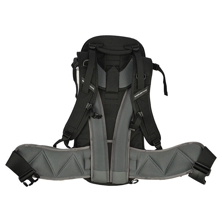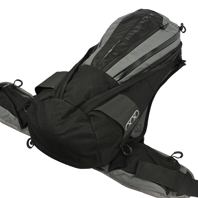 Sono presenti spallacci regolabili in altezza con cinturino pettorale regolabile in altezza e cinturino lombare, che è naturalmente rimovibile. Il cinturino lombare ha su ciascun lato una pratica tasca per piccoli oggetti con chiusura a zip. L'imbottitura posteriore dello zaino è realizzata in modo da consentire la ventilazione e ridurre la sudorazione della schiena. Nella parte superiore dello zaino è presente una solida maniglia per trasportarlo a mano. Tutte le cerniere dello zaino sono dotate di occhielli gommati per una facile presa anche con i guanti. Nella parte inferiore dello zaino, sotto la cerniera, è riposto un impermeabile integrato e rimovibile che, se necessario, copre l'intero zaino.