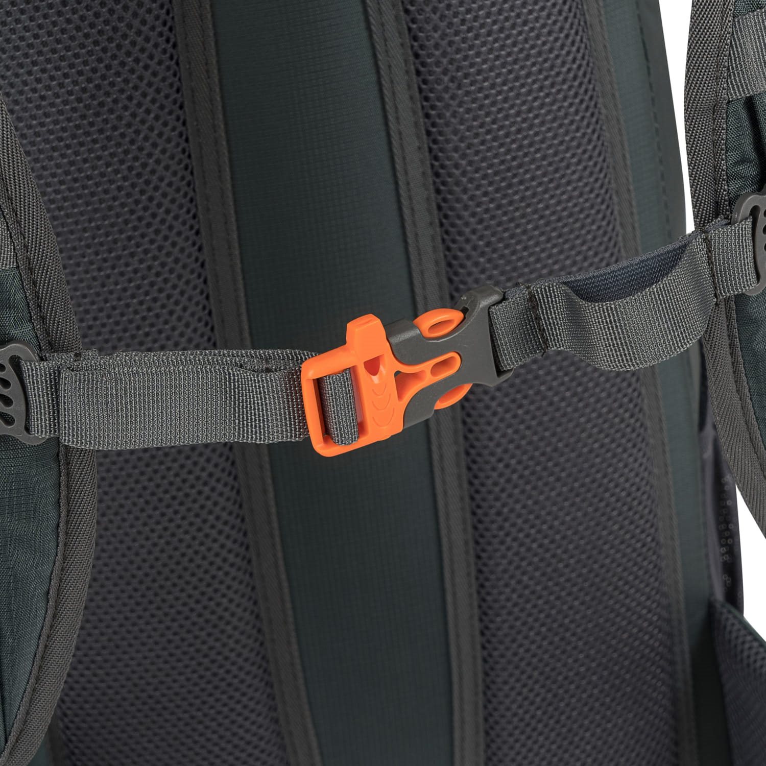 Gli spallacci imbottiti e regolabili sono leggermente curvi per garantire un maggiore comfort durante il trasporto e sono dotati di passanti per il tubo della sacca idrica e di una cinghia pettorale. Quest'ultima è elastica, regolabile in altezza e si chiude con una fibbia in plastica con fischietto in colore a contrasto. Il giubbotto è imbottito nella zona dei fianchi con una rete 3D traspirante, a cui segue una semplice cinghia chiusa con una fibbia. Anche la parte posteriore è imbottita con rete 3D e presenta un sottile canale centrale che migliora la ventilazione della schiena. Sopra le cinghie si trova una maniglia imbottita per il trasporto e un'apertura per il tubo del sacca idratante.