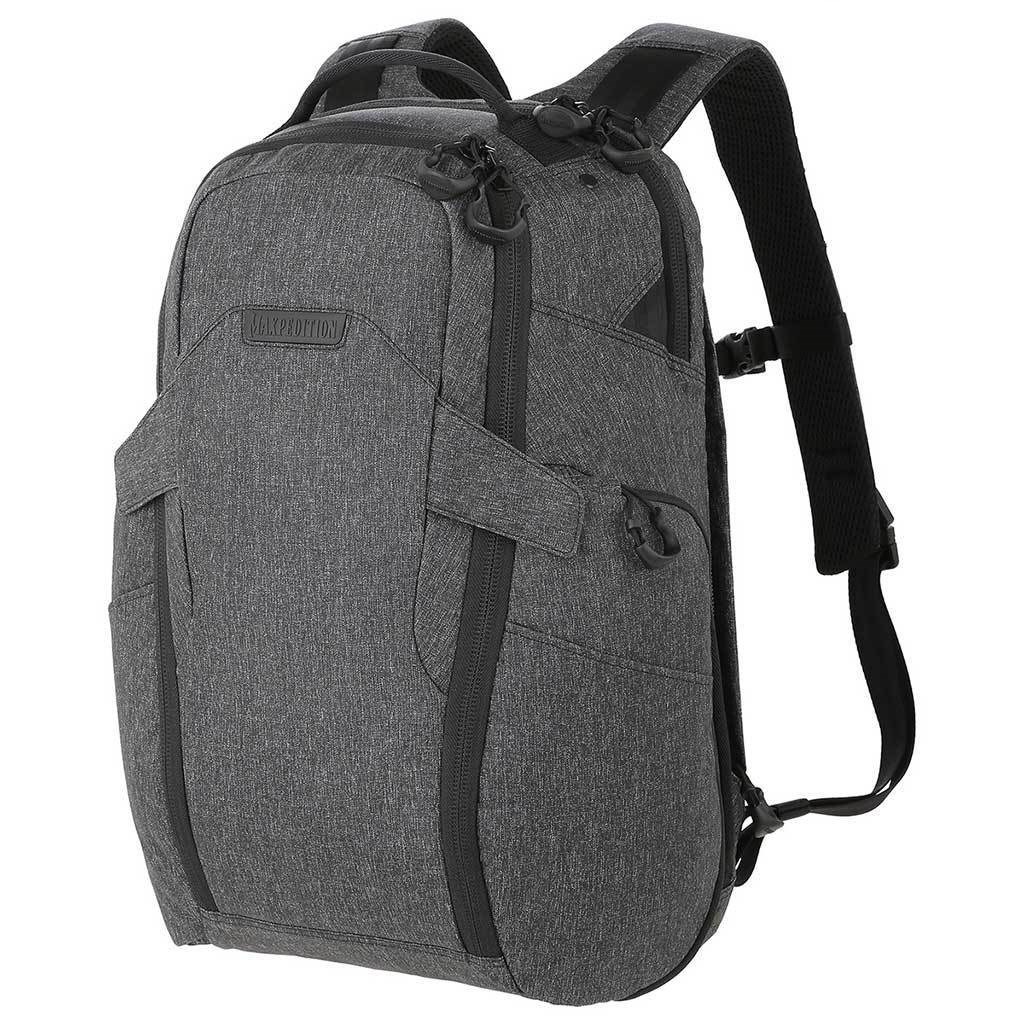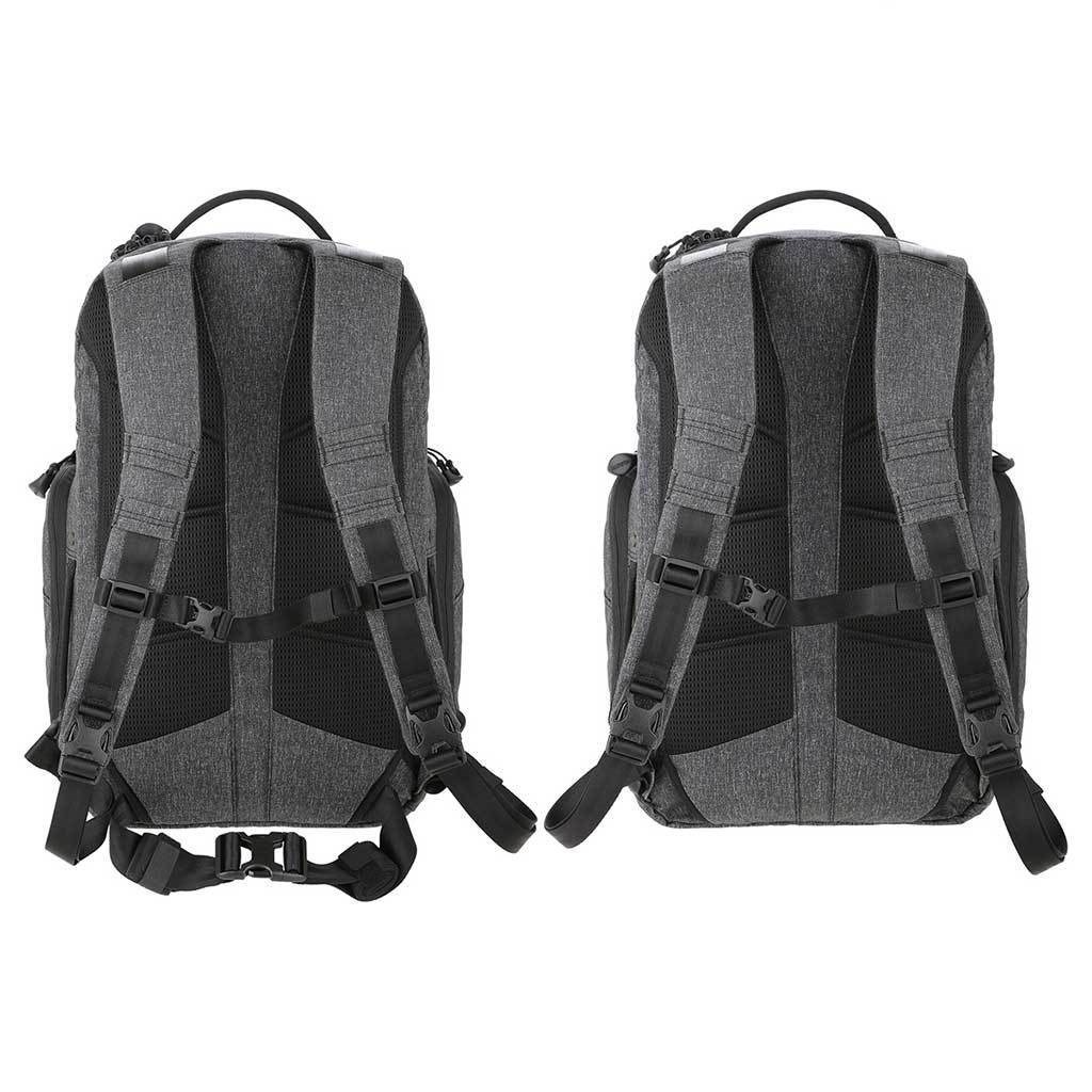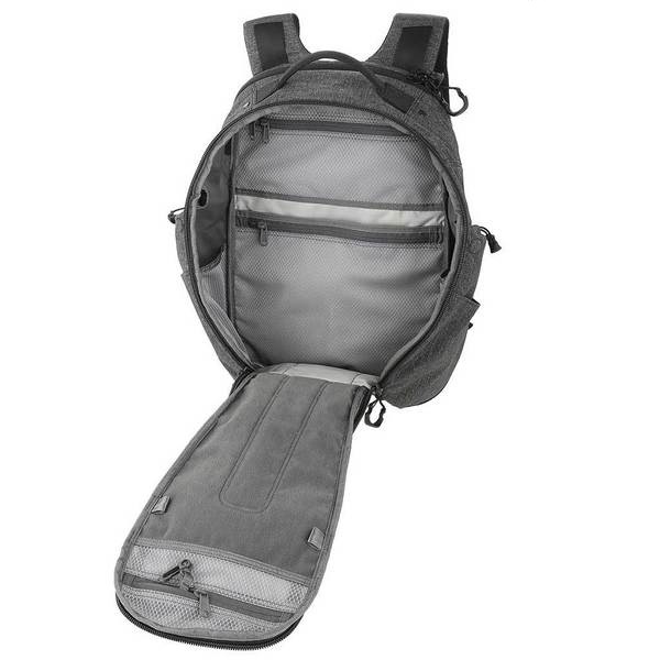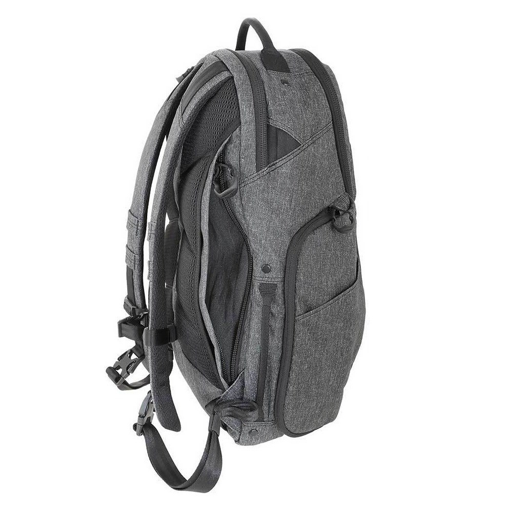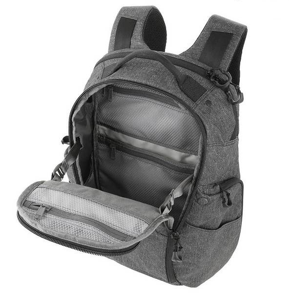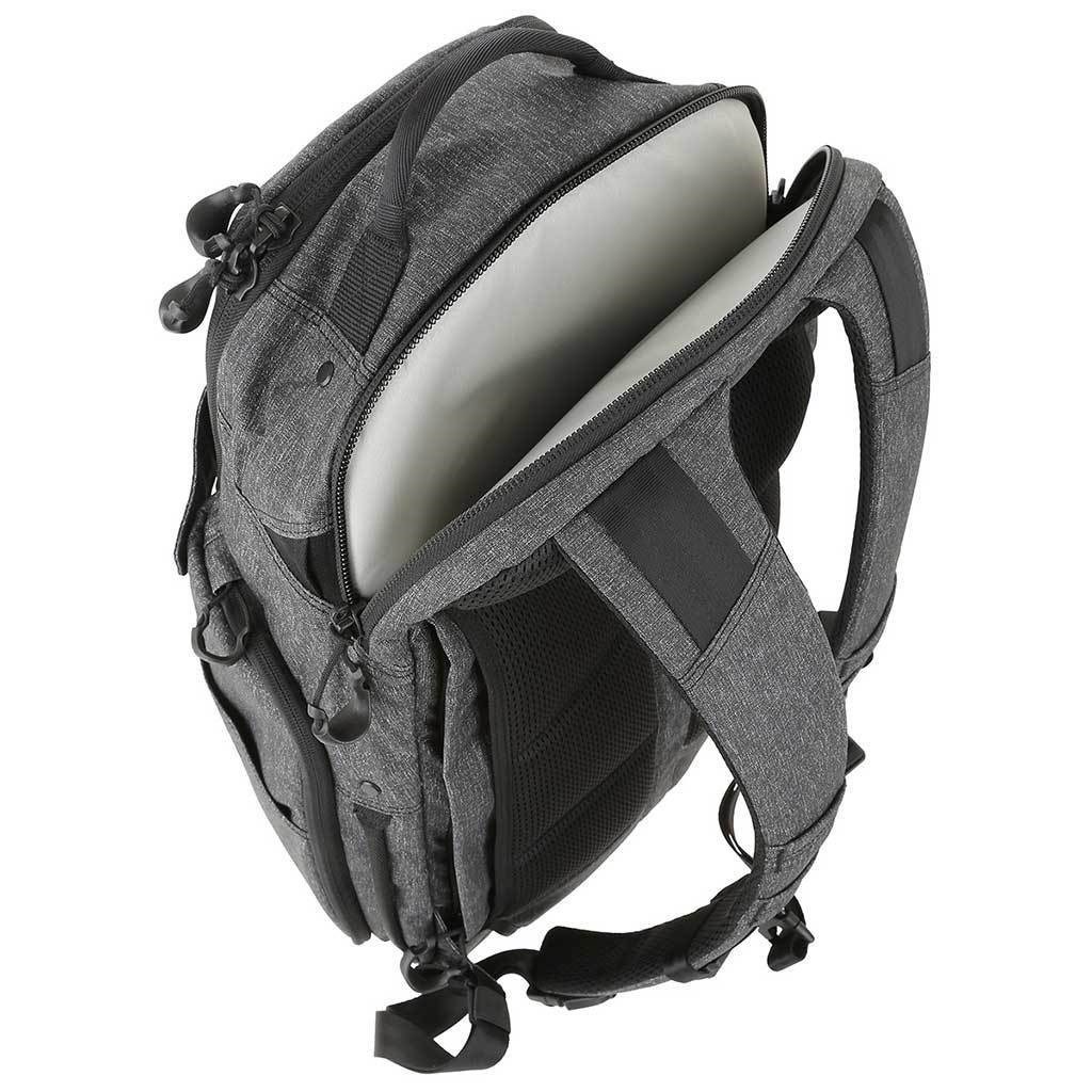 Zaino per laptop ideale, dotato di scomparto per il trasporto occulto di armi (denominato CCW = Concealed Carry Weapon) della ditta Maxpedition. Gli spallacci ergonomici sono dotati di fibbie a sgancio rapido Duraflex® Xlite®. Duraflex® Xlite®. La tasca principale è dotata di una lunga cerniera a doppio senso che apre lo zaino su tre lati, consentendo un accesso facile e veloce agli oggetti riposti. La tasca è dotata di scomparti piatti in rete con cerniera. La tasca per laptop è imbottita con una superficie in microfibra e può contenere un laptop, le sue dimensioni sono 30,5 x 3,8 x 45,7 cm.