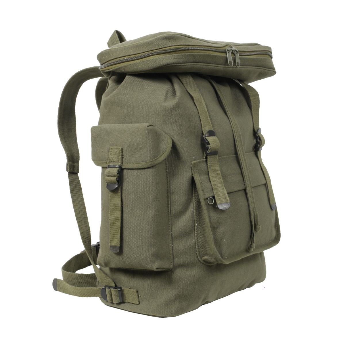 Zaino da escursionismo dal design classico, realizzato in robusto tessuto di cotone.