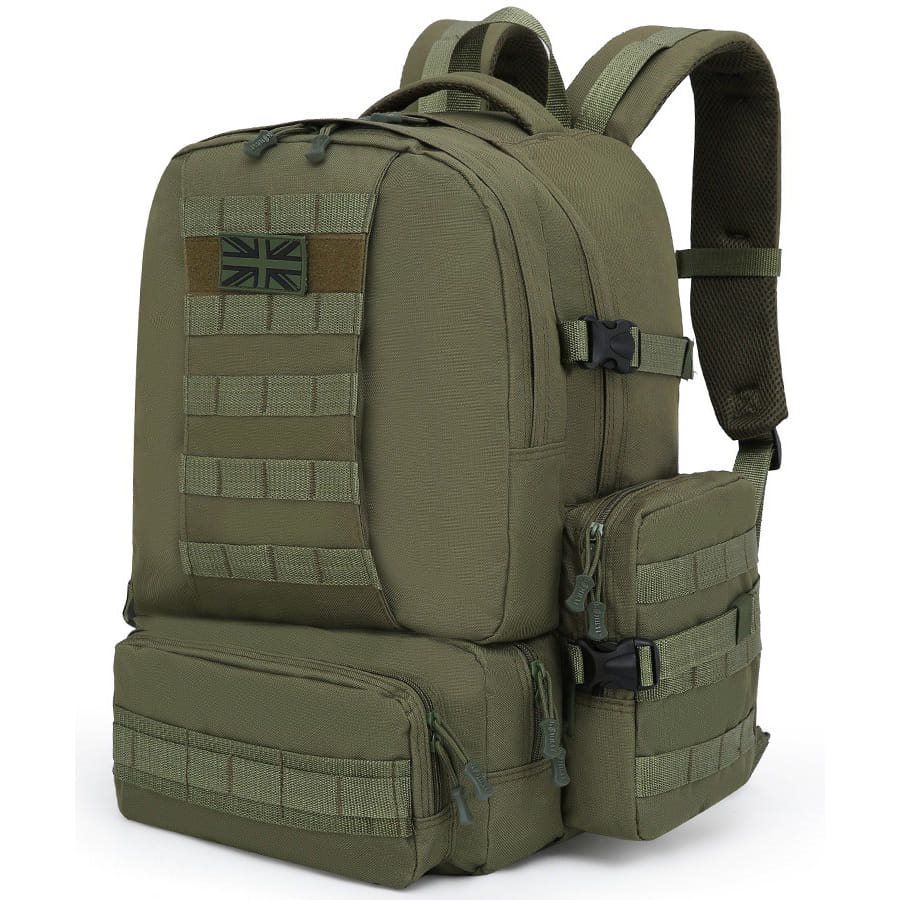 Zaino da spedizione compatibile con MOLLE/PALS realizzato in materiale resistente. È dotato di un comodo sistema dorsale, due tasche laterali, tre tasche frontali e un ampio vano principale. Ulteriori informazioni