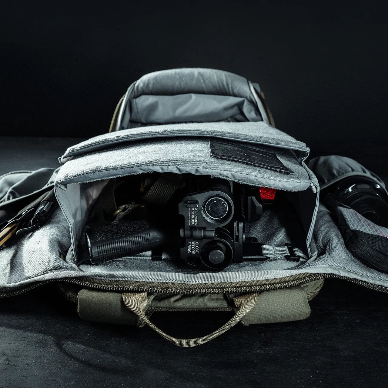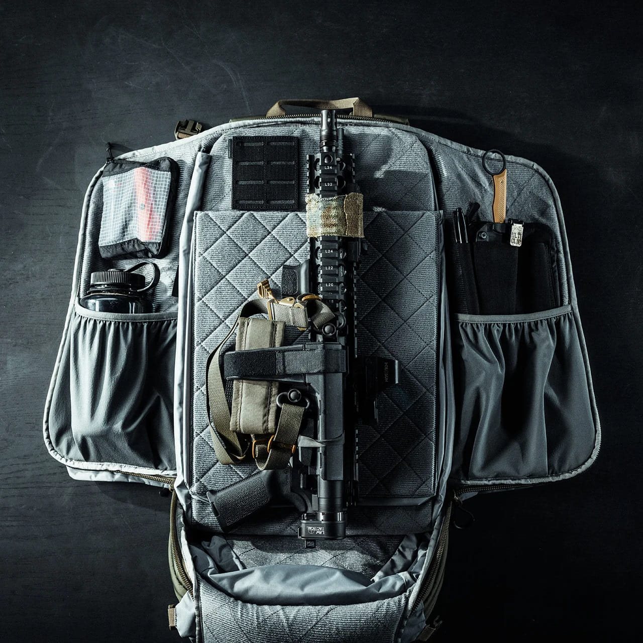Il più capiente degli zaini della linea FADE. Lo zaino è caratterizzato da una struttura espandibile con la possibilità di trasportare armi lunghe in modo discreto e da un aspetto civile e sobrio. Per la sua realizzazione è stato utilizzato nylon 210D con trattamento antistrappo.