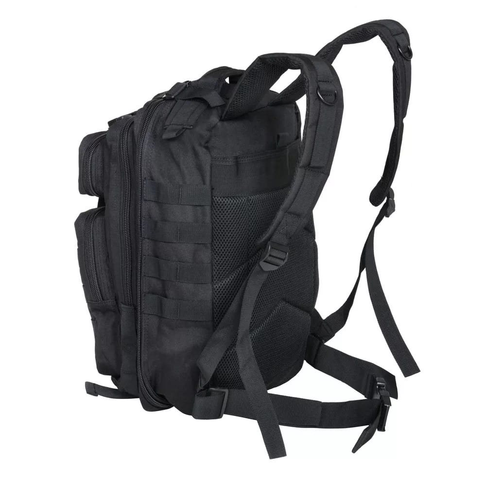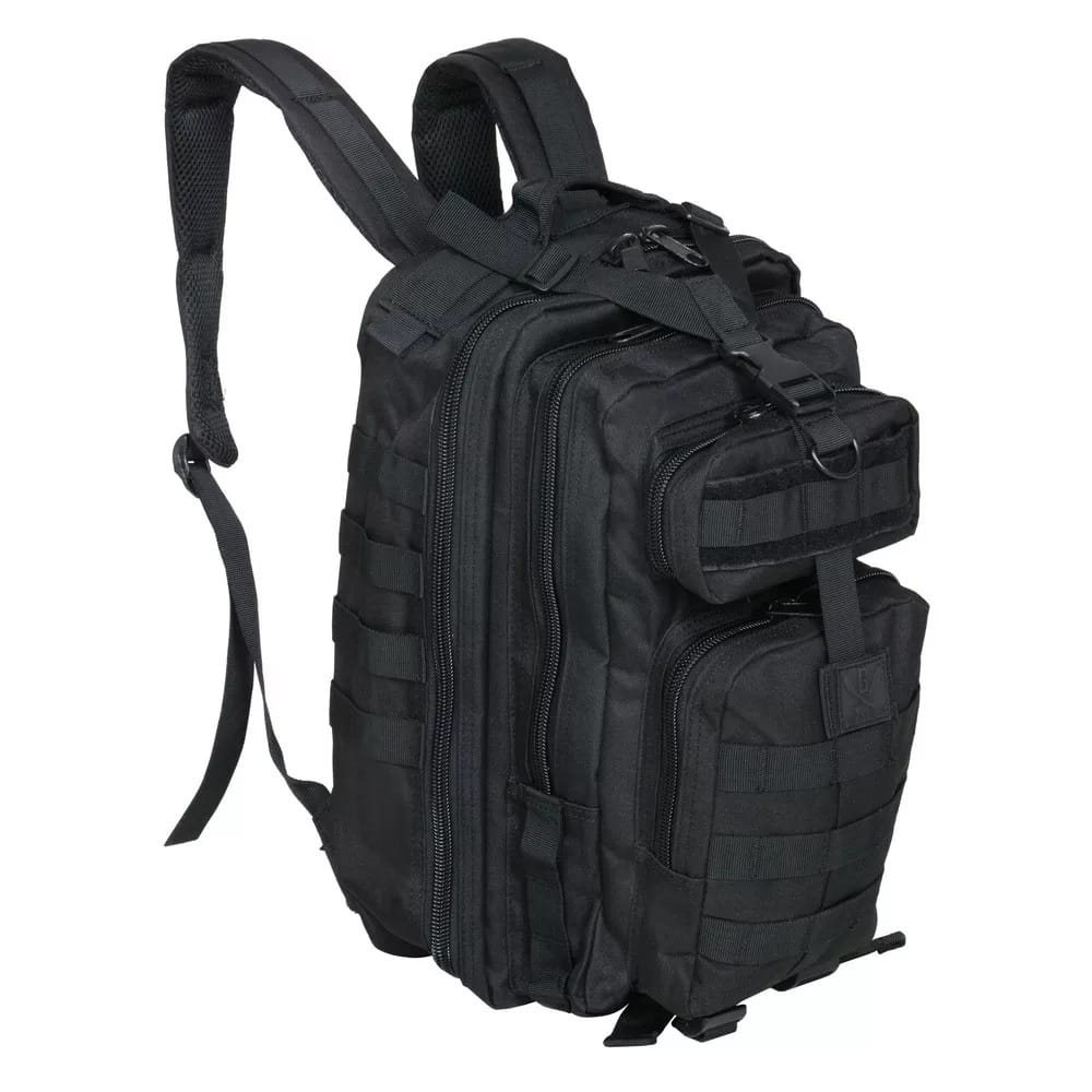 Zaino tattico di dimensioni ridotte, ideale per l'uso quotidiano, la cui struttura si ispira ai classici zaini da combattimento. È realizzato in poliestere resistente con rivestimento idrorepellente.