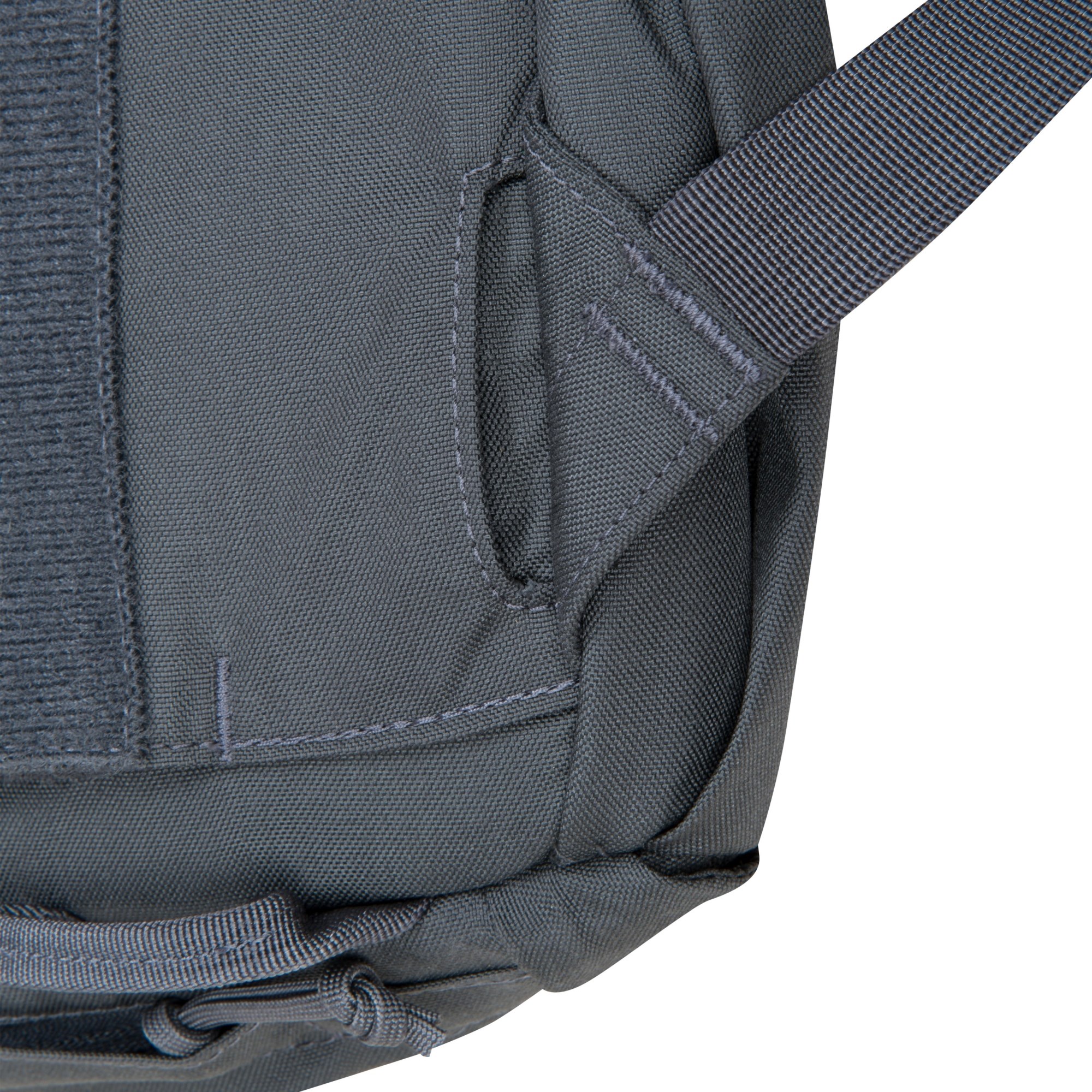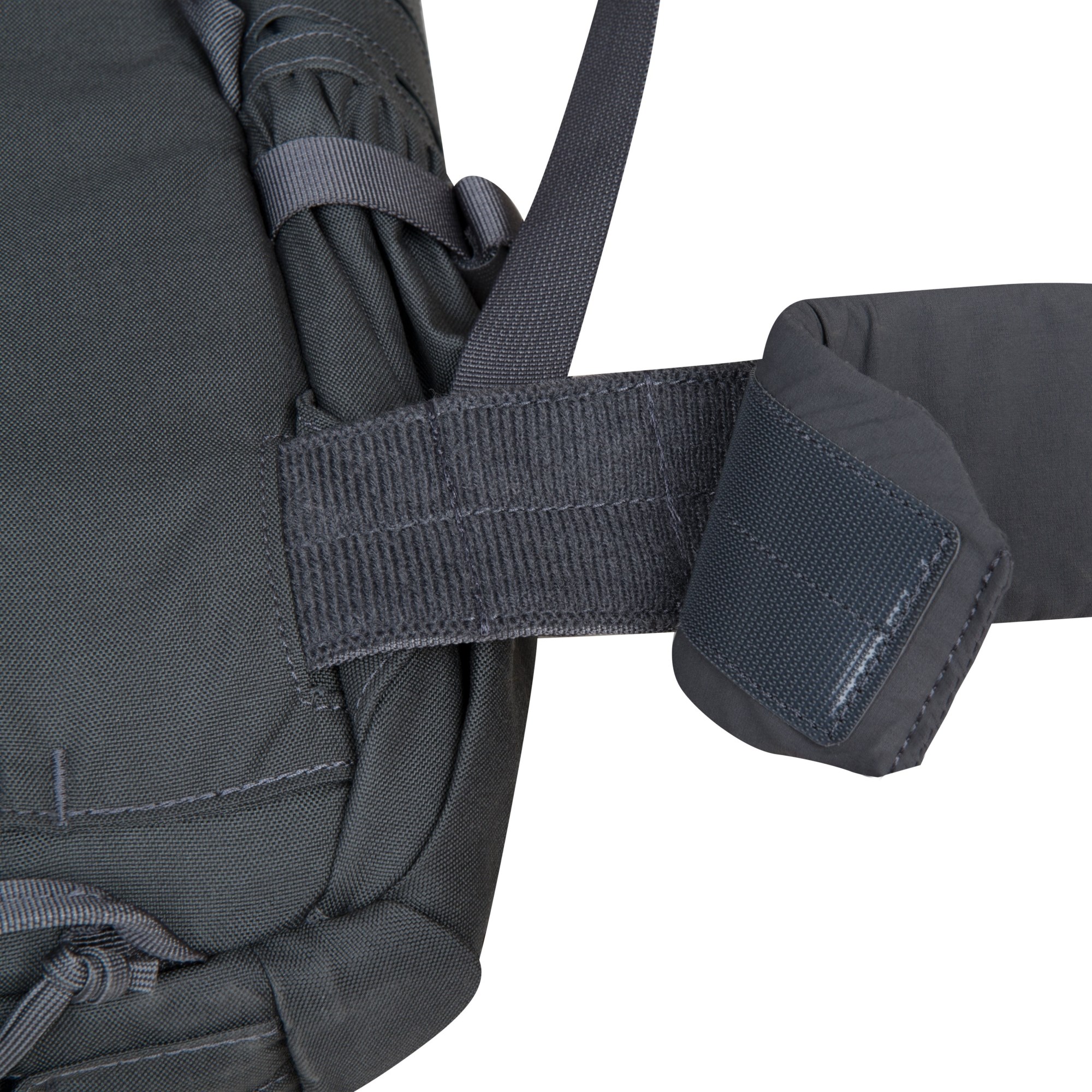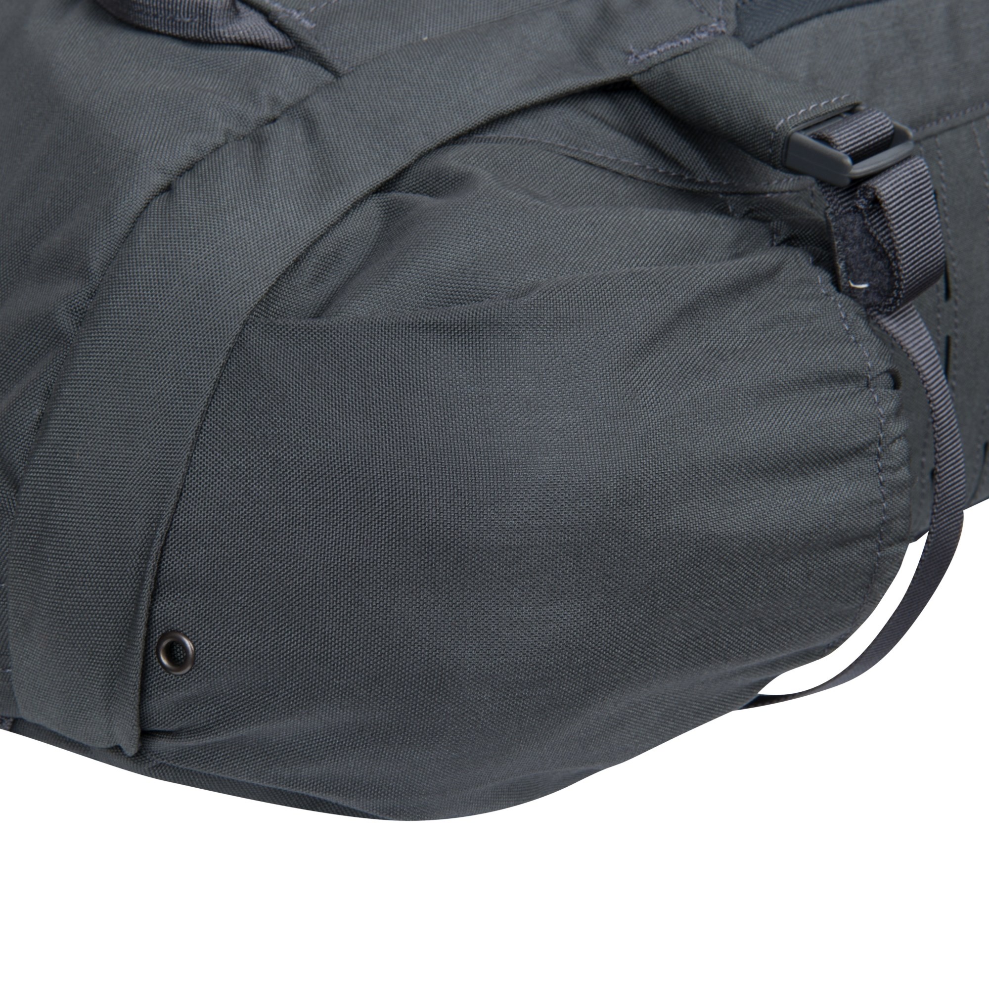 Sul lato dello zaino si trovano due cinghie di compressione, un pannello con intreccio MOLLE/PALS inciso al laser e due tasche destinate al trasporto di bottiglie d'acqua. Se questa tasca non viene utilizzata, aderisce perfettamente allo zaino e può essere ulteriormente stretta con la cinghia di compressione inferiore se la si riempie con attrezzatura di dimensioni più piccole.