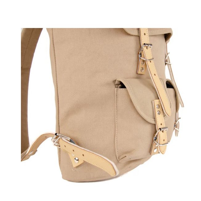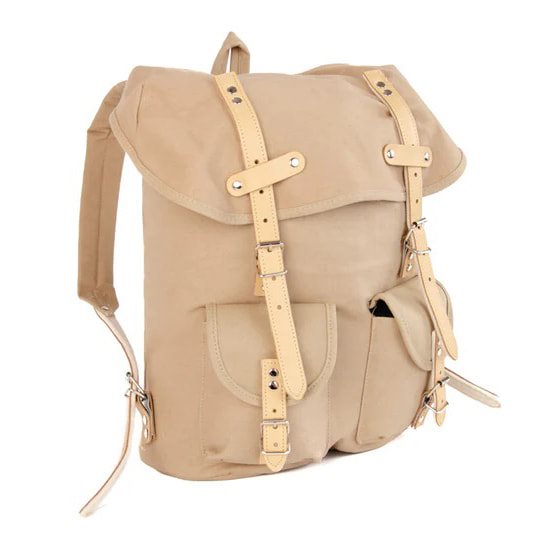 Zaino da escursionismo in stile retrò con dettagli in pelle bovina. Il materiale utilizzato per la realizzazione dello zaino è cotone resistente. Tutti gli scomparti dello zaino sono chiusi con cinturini in pelle foderati in feltro. Zaino EDC ideale. Ulteriori informazioni