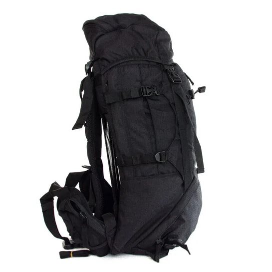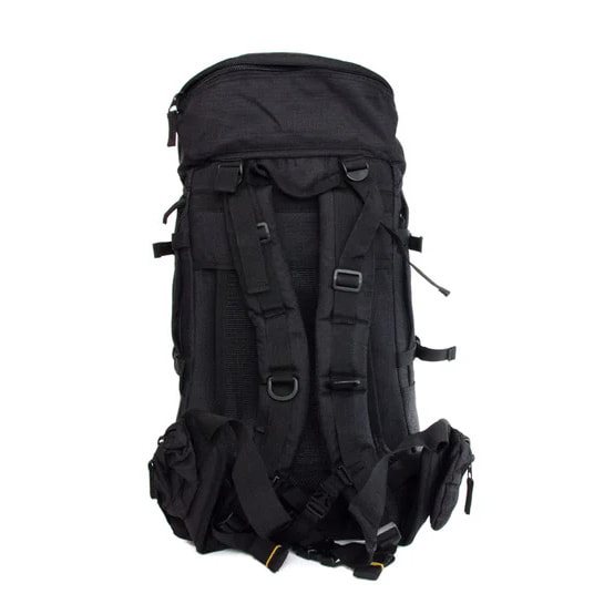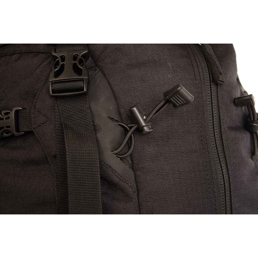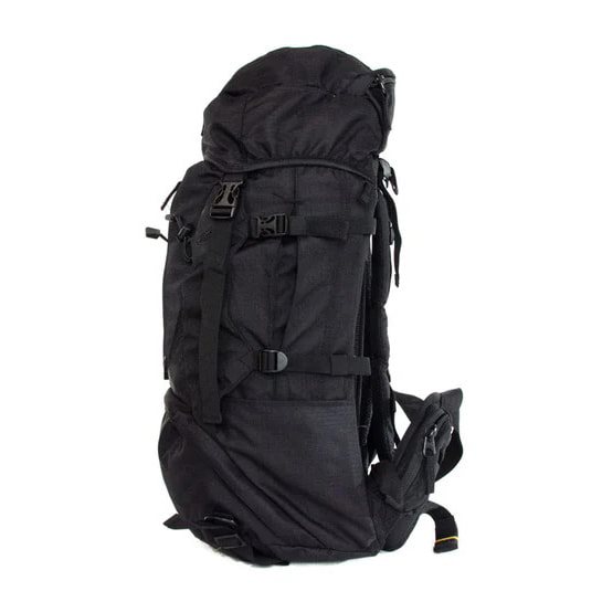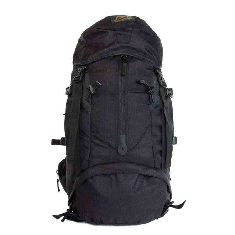 Zaino di medie dimensioni per escursionismo, caccia o applicazioni tattiche con apertura superiore e inferiore. L'apertura superiore è dotata di un coperchio con tasca esterna e interna con cerniera. L'apertura inferiore è dotata di una cerniera a doppio cursore coperta da una patta. All'interno dello zaino è presente uno scomparto per l'inserto idratante e un'apertura centrale per far passare il tubo. Lo spazio interno dello zaino può essere diviso in due scomparti, superiore e inferiore, tramite un collare di chiusura. Lo zaino è dotato di una tasca frontale per la mappa e quattro tasche laterali. Quelle più grandi sono chiuse da cerniere verticali e possono contenere, ad esempio, una borraccia da 1 litro, mentre quelle inferiori aperte sono adatte per bottiglie più piccole o per riporre i bastoncini da trekking. Ai lati sono presenti cinghie di compressione e sul lato frontale anelli per il fissaggio dei piccozze. Nella tasca sul fondo dello zaino è integrato un impermeabile. Lo zaino è dotato anche di un supporto in materiale elastico che si aggancia al lato frontale dello zaino. Serve per fissare il casco, la giacca arrotolata, ecc.