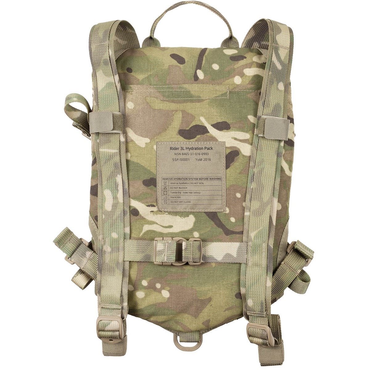 Nella parte posteriore dello zaino sono presenti semplici cinghie di trasporto rimovibili. Ai lati sono presenti quattro cinghie con fibbie FASTEX che servono per fissare lo zaino ai sistemi MOLLE/PALS. L'interno dello zaino, imbottito con uno strato di schiuma PE, è accessibile tramite una patta fissata con VELCRO e cerniere YKK sui lati. All'interno può essere comodamente inserita una sacca idratante da tre litri, il cui tubo può essere fatto uscire dal lato sinistro o destro dello zaino. La patta è inoltre ricoperta da una trama MOLLE/PALS, che può essere utilizzata per fissare rapidamente tasche e custodie compatibili.