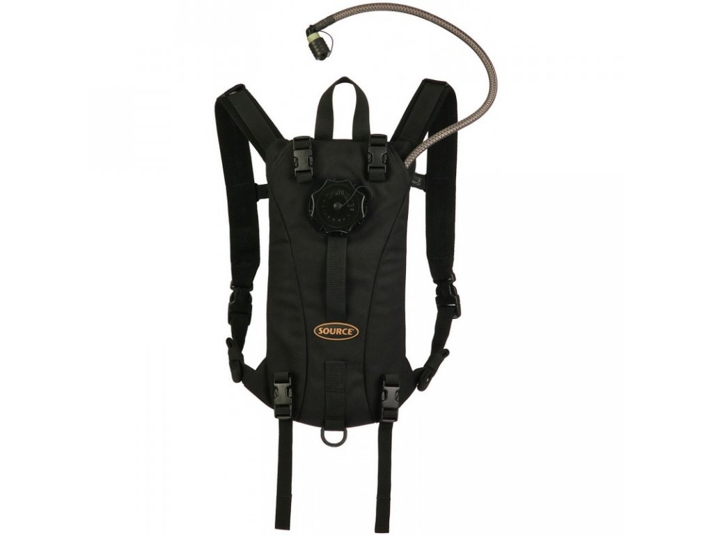 Sacca idratante tattica del marchio SOURCE con una capacità di 2 litri. La sacca utilizza un tubo di tipo QMT con boccaglio Storm. La parte anteriore della sacca è dotata di una cerniera verticale per un facile accesso alla sacca interna.