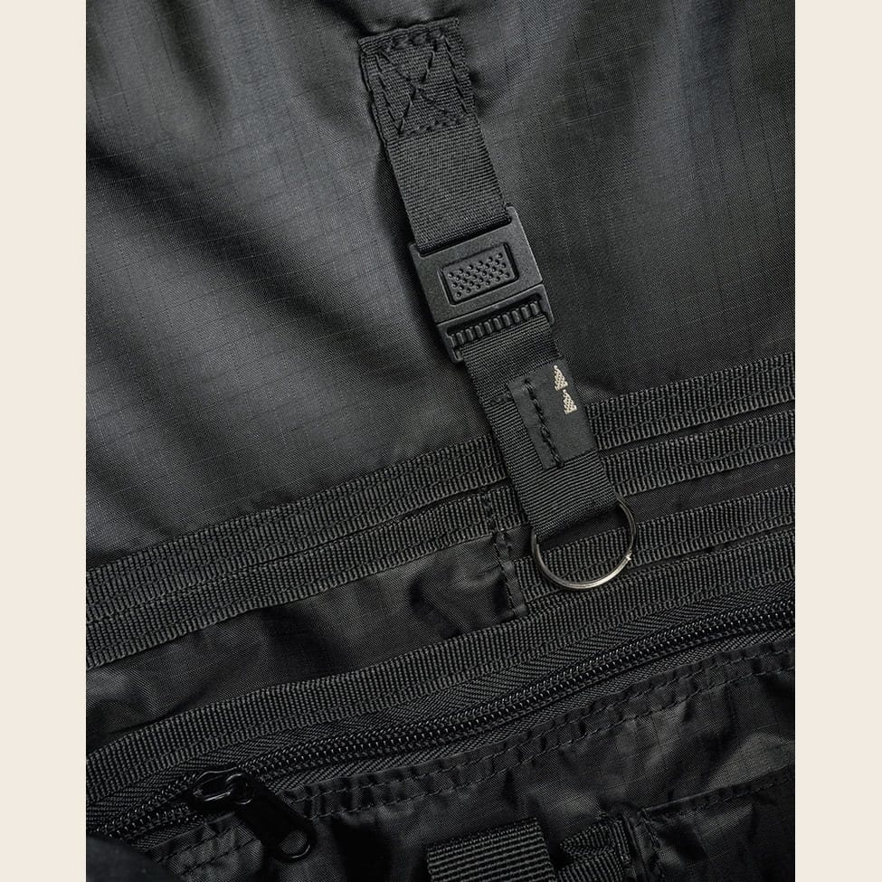 Gli spallacci sono regolabili in lunghezza, imbottiti con rete 3D e dotati di cinturino pettorale con fibbia in plastica. Lo zaino dispone anche di un cinturino lombare non imbottito con fibbia FASTEX. Ai lati sono presenti due cinghie di compressione e tasche destinate al trasporto di bottiglie o al fissaggio di attrezzature aggiuntive come bastoncini da trekking, ecc. La parte anteriore dello zaino è dotata di una tasca superiore per piccoli oggetti, una tasca più grande con organizer interno e due cinghie di fissaggio con fibbia in plastica. Entrambe le camere principali sono accessibili tramite cerniere a doppio cursore, la tasca anteriore è senza divisori interni, mentre quella posteriore contiene uno scomparto imbottito per laptop.