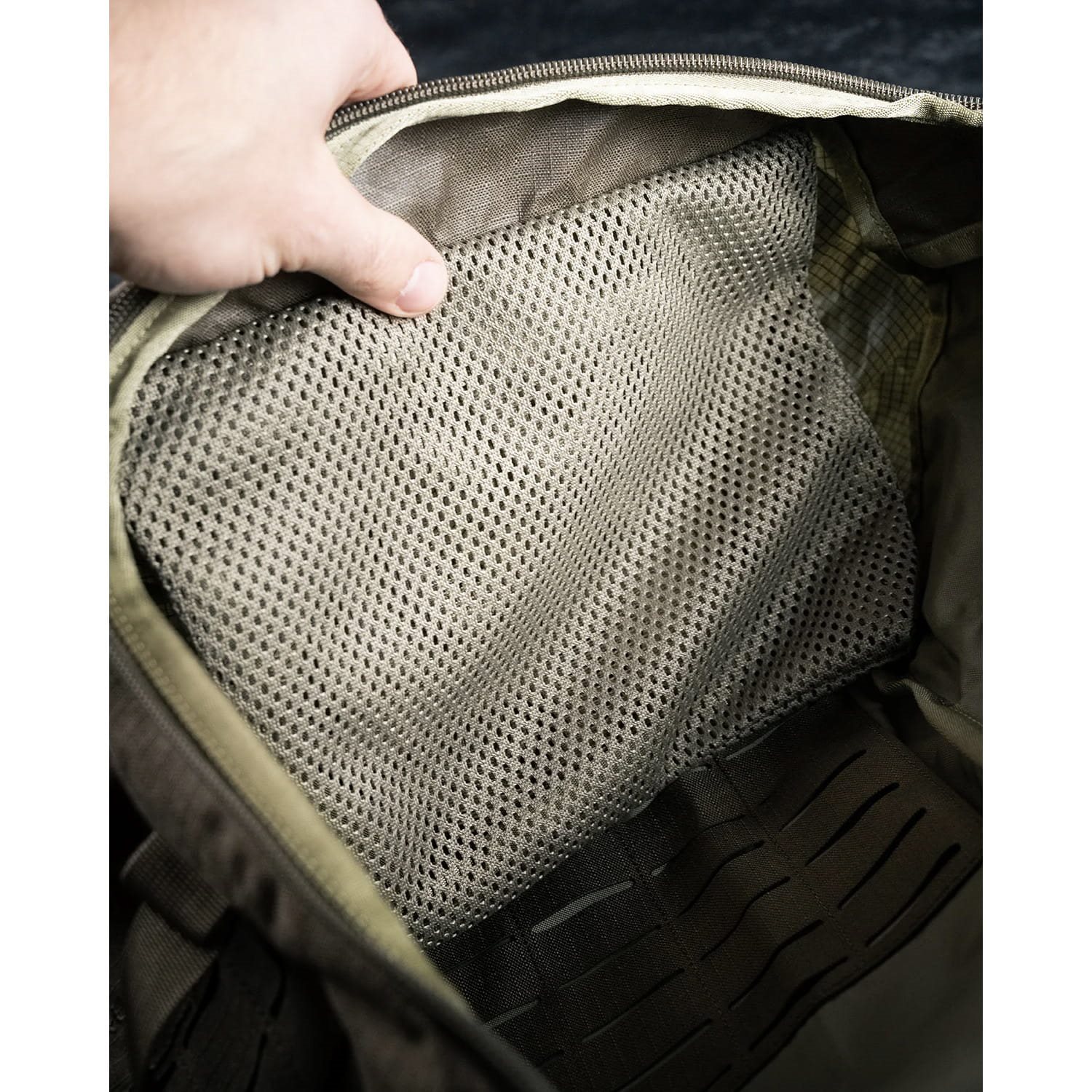 Borsa modulare ad alta capacità progettata per l'integrazione nel telaio EMOD MISSION FRAME. Lo zaino è realizzato in nylon 500D altamente resistente, offre una capacità di circa 79 litri con un peso di 1,58 kg e la sua parte esterna è dotata di un'ampia rete modulare standard MOLLE/PALS. Ciò consente di equipaggiare lo zaino con un'ampia gamma di accessori compatibili, quali tasche, fondine e simili. Il vantaggio fondamentale dello zaino MISSION RUCK è l'apertura superiore a rotolo che permette, all'occorrenza, di aumentare la capacità. È possibile acquistare separatamente l'estensione EMOD ZIPPER e la custodia MISSION ARC, grazie alle quali lo zaino può contenere anche un'arma lunga. Il coperchio superiore in dotazione è fissato allo zaino tramite fibbie, quindi è possibile rimuoverlo rapidamente per alleggerire il carico sulla schiena.