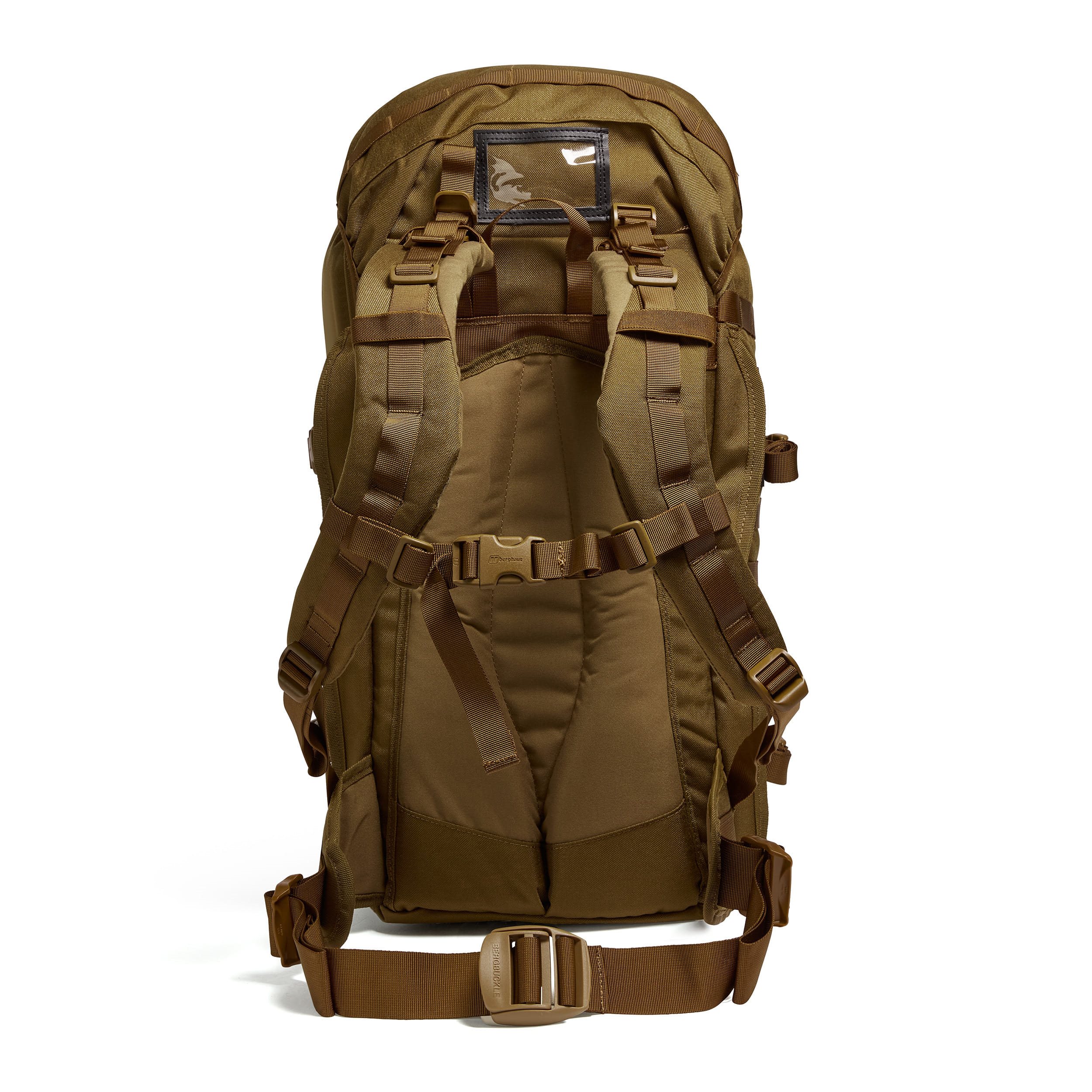 Gli spallacci sono fortemente imbottiti, regolabili in altezza, anatomicamente curvi, dotati di cinghie stabilizzatrici, passanti per il tubo della sacca idratante e cinturino pettorale elastico, regolabile in altezza in tre posizioni. Il cinturone è leggermente imbottito nella parte stretta dello zaino e si chiude con una fibbia in plastica Bergbuckle. La parte posteriore è rinforzata da una resistente struttura in alluminio e imbottita con schiuma. Sopra le cinghie si trova una semplice maniglia per il trasporto e una finestrella in mica per le targhette identificative. Ai lati sono presenti aperture per il passaggio del tubo della sacca idrica, diverse file di attacchi modulari standard MOLLE/PALS e due coppie di cinghie di compressione per fissare attrezzature aggiuntive. Se necessario, è possibile utilizzare le cerniere laterali per fissare attrezzature compatibili della linea MMPS.