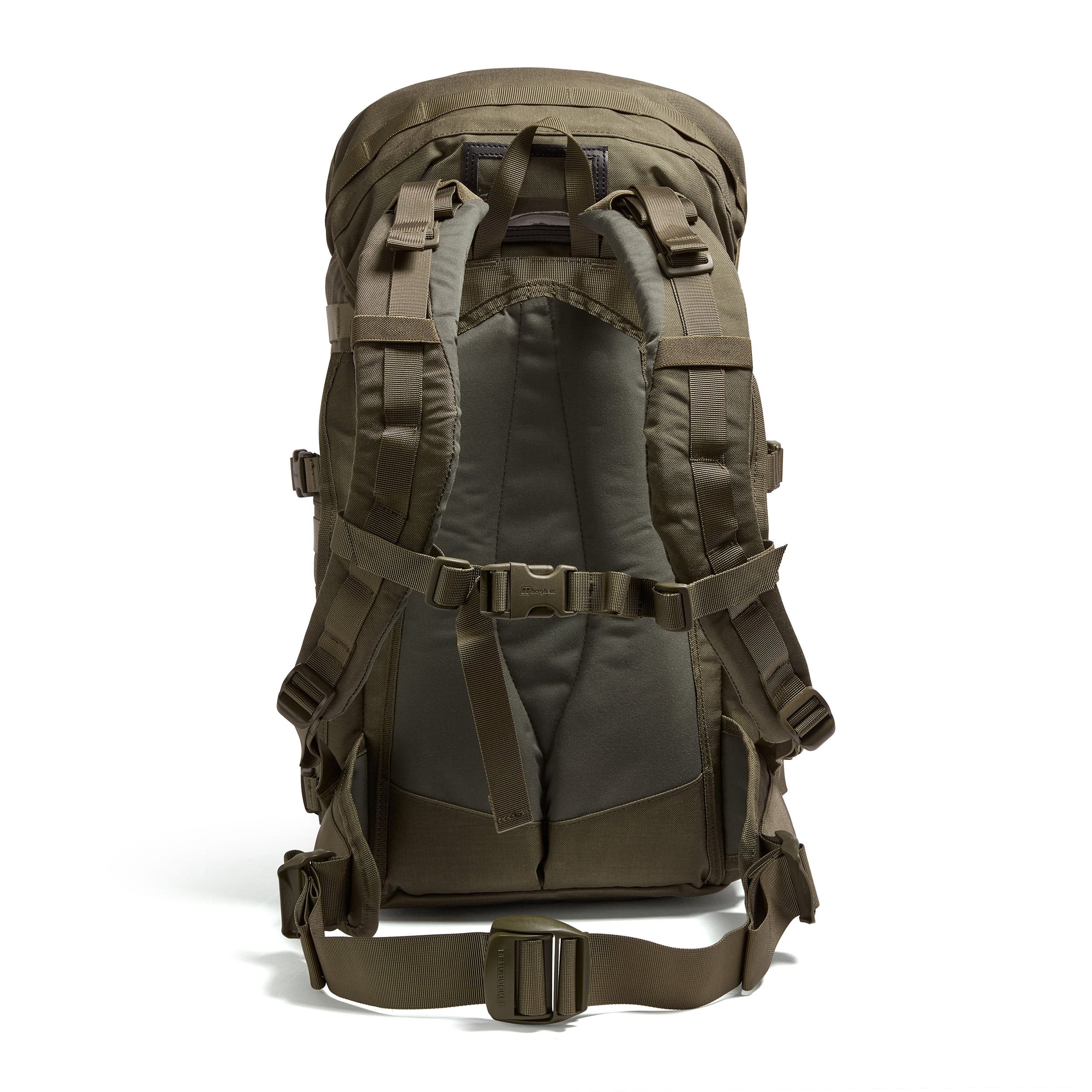 Gli spallacci sono fortemente imbottiti, regolabili in altezza, anatomicamente curvi, dotati di cinghie di stabilizzazione, passanti per il tubo della sacca di idratazione e cinturino pettorale elastico, regolabile in altezza in tre posizioni. Il cinturone è leggermente imbottito nella parte stretta dello zaino e si chiude con una fibbia in plastica Bergbuckle. La schiena è rinforzata da una resistente struttura in alluminio e imbottita con schiuma. Sopra le cinghie si trova una semplice maniglia per il trasporto e una finestrella in mica per le etichette con il nome. Ai lati sono presenti aperture per il passaggio del tubo della sacca idrica, diverse file di attacchi modulari standard MOLLE/PALS e due coppie di cinghie di compressione per fissare attrezzature aggiuntive. Se necessario, è possibile utilizzare le cerniere laterali per fissare attrezzature compatibili della linea MMPS.