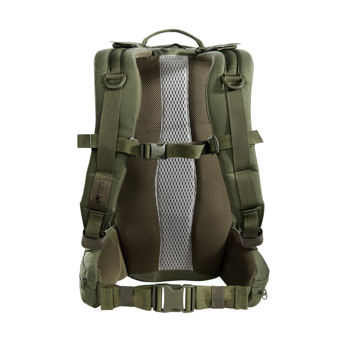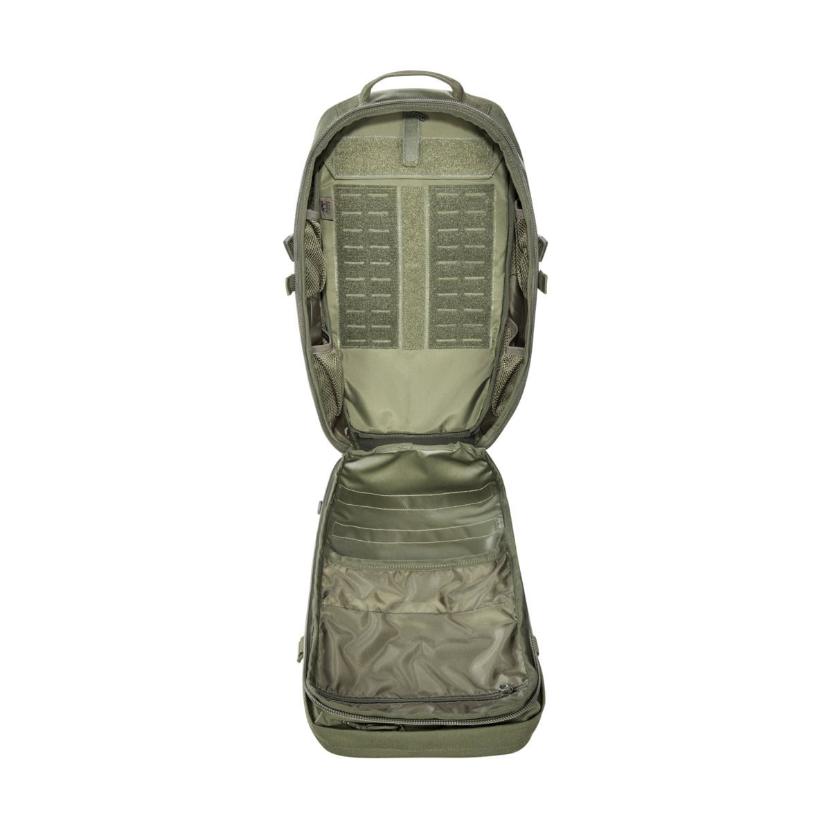 Lo zaino Modular Combat, con la sua struttura e il suo volume di 22 litri, rientra nella categoria degli zaini da combattimento per il trasporto dell'equipaggiamento essenziale per la conduzione del combattimento. Il sistema dorsale è costituito da una piastra in plastica con rinforzo in alluminio, spallacci ergonomici e cintura lombare parzialmente imbottita con tasche con cerniera. Gli spallacci sono fissati allo zaino tramite fibbie in plastica, che consentono di regolarne la lunghezza anche per indossarlo sopra un ingombrante giubbotto antiproiettile. La cintura lombare è completamente rimovibile. Lo scomparto principale, con una capacità di 17 litri, può essere aperto completamente grazie alla chiusura con cerniera per un facile accesso. All'interno dello scomparto, oltre al vano con pannello posteriore e supporto per sacca idrica, sono presenti diverse tasche/scomparti più piccoli e un ampio pannello in velcro con aggancio modulare PALS/MOLLE inciso al laser per una migliore organizzazione dello spazio interno. Le due tasche esterne con una capacità di 3 e 2 litri sono anch'esse chiudibili con cerniera e dotate di velcro, tasche o passanti per piccoli accessori. Per riporre altri accessori è possibile utilizzare le tasche laterali con bordo elastico, le cinghie di compressione laterali, i passanti per cinturini di fissaggio o lacci elastici e, infine, il sistema modulare inciso al laser.