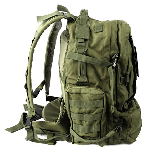 Zaino modulare da combattimento più grande, denominato "tre giorni", con spallacci larghi e comodamente imbottiti con fibbia toracica, fibbie fastex per l'eventuale necessità di sganciare lo zaino in caso di emergenza e occhielli per il fissaggio Ulteriori informazioni