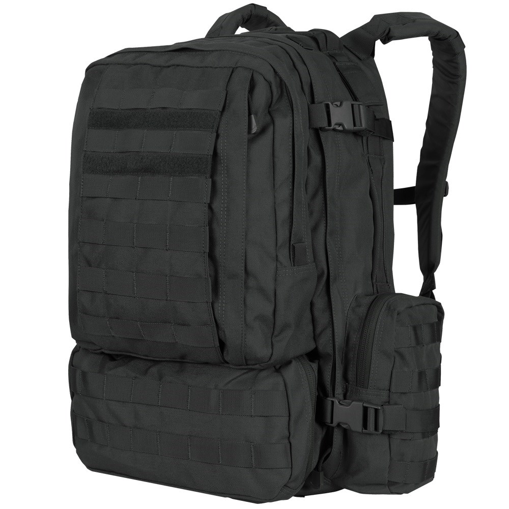 Zaino modulare da assalto più grande, denominato "tre giorni". Spallacci ampi e comodamente imbottiti con fibbia pettorale, fibbie fastex per lo sgancio di emergenza dello zaino, se necessario, e occhielli per il fissaggio dell'equipaggiamento.