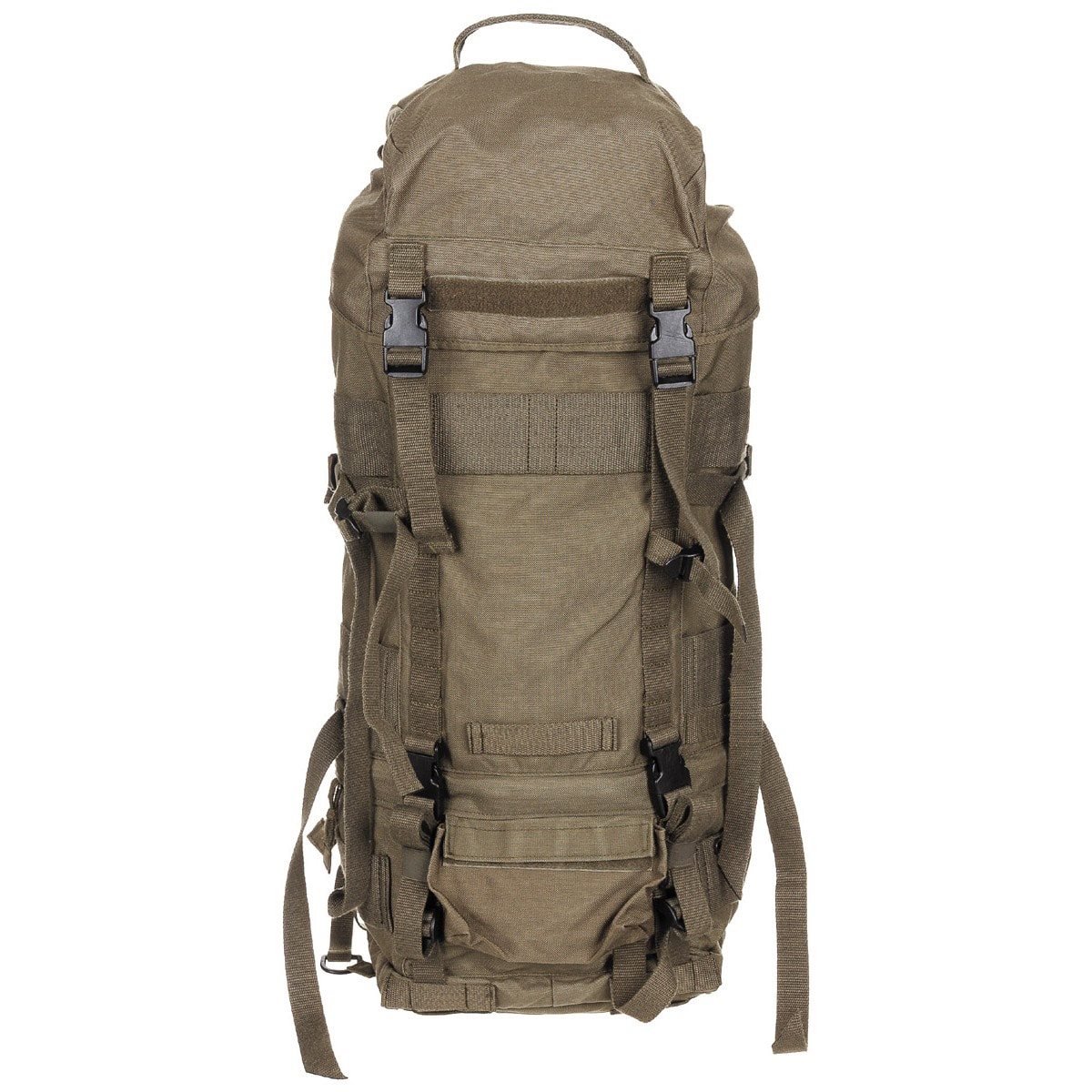 Zaino originale proveniente dall'equipaggiamento dell'esercito austriaco. Si tratta di uno zaino dalla classica struttura a due scomparti con accesso superiore e inferiore, separati da un collare a coulisse. La capacità di carico può essere aumentata aggiungendo tasche laterali. Lo zaino è usato, ma in buone condizioni. La cintura lombare non è inclusa.