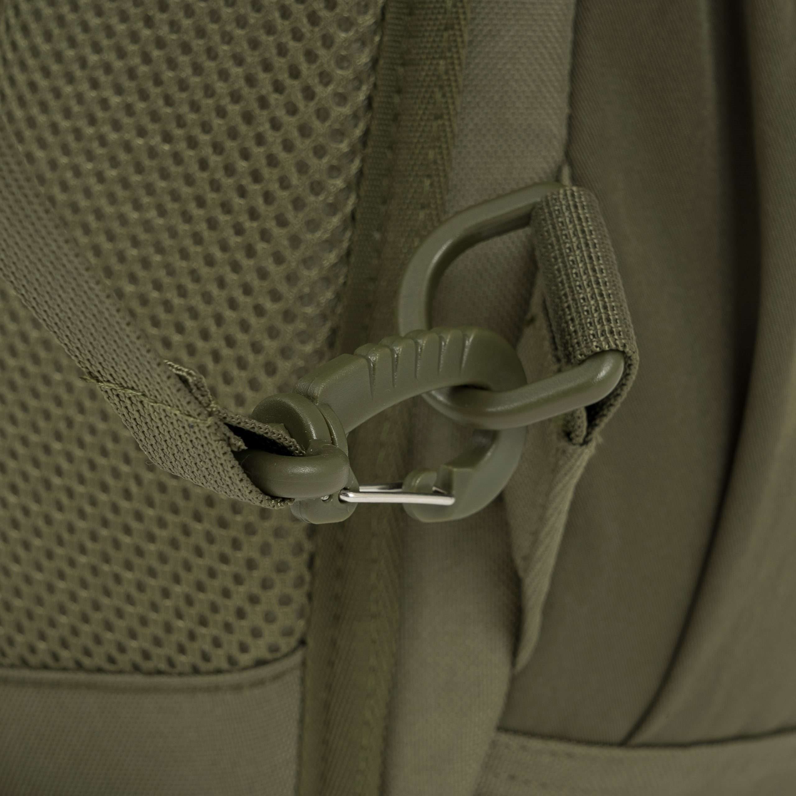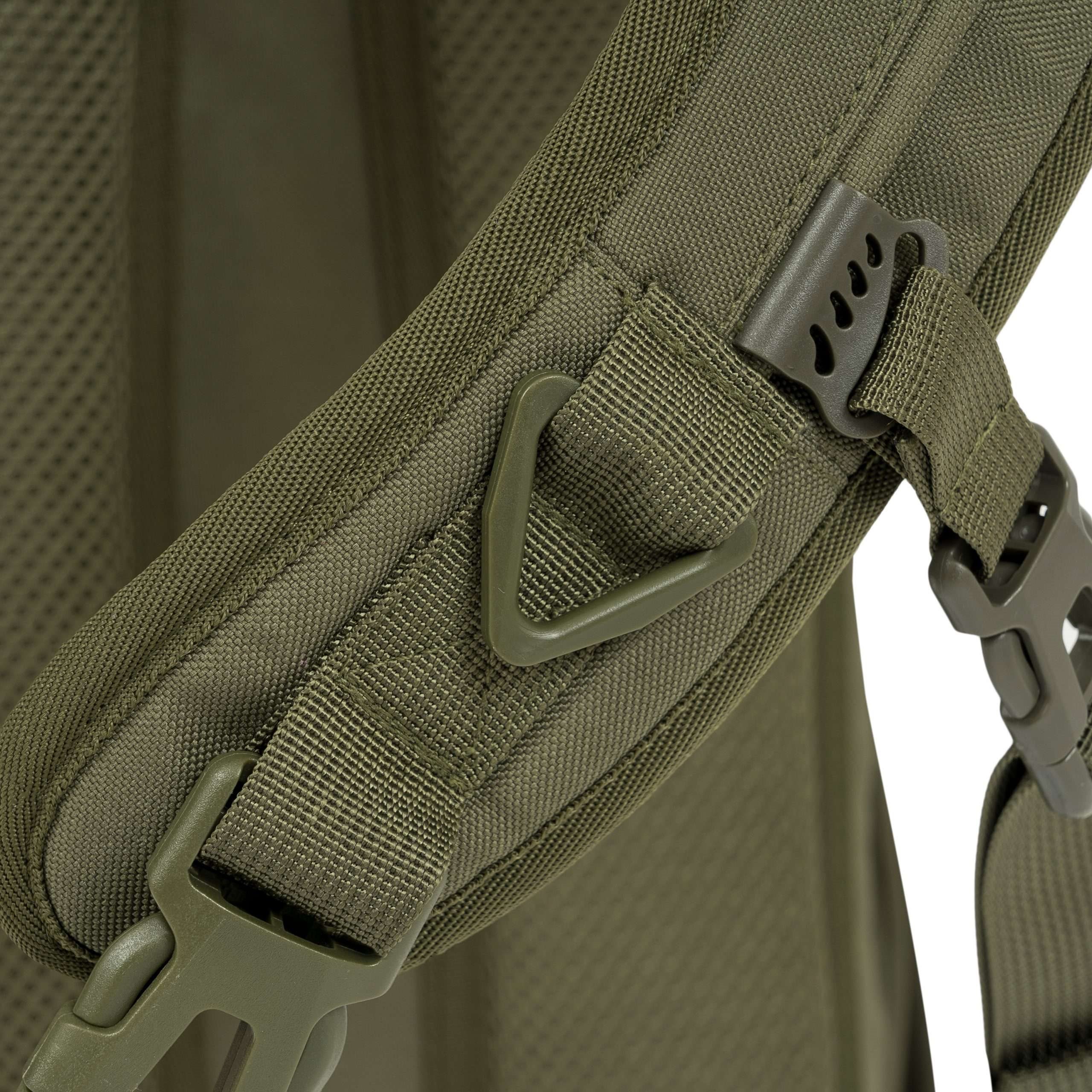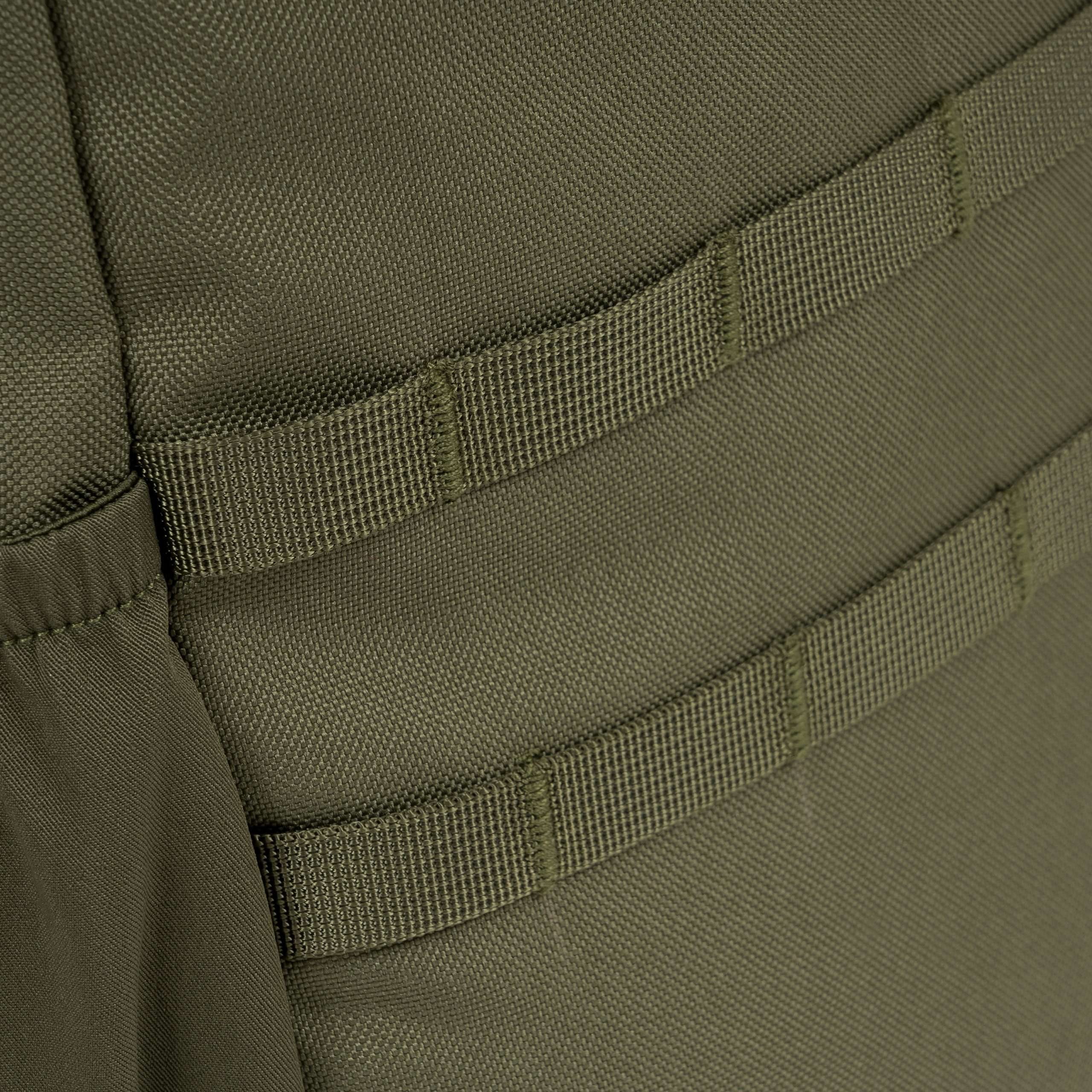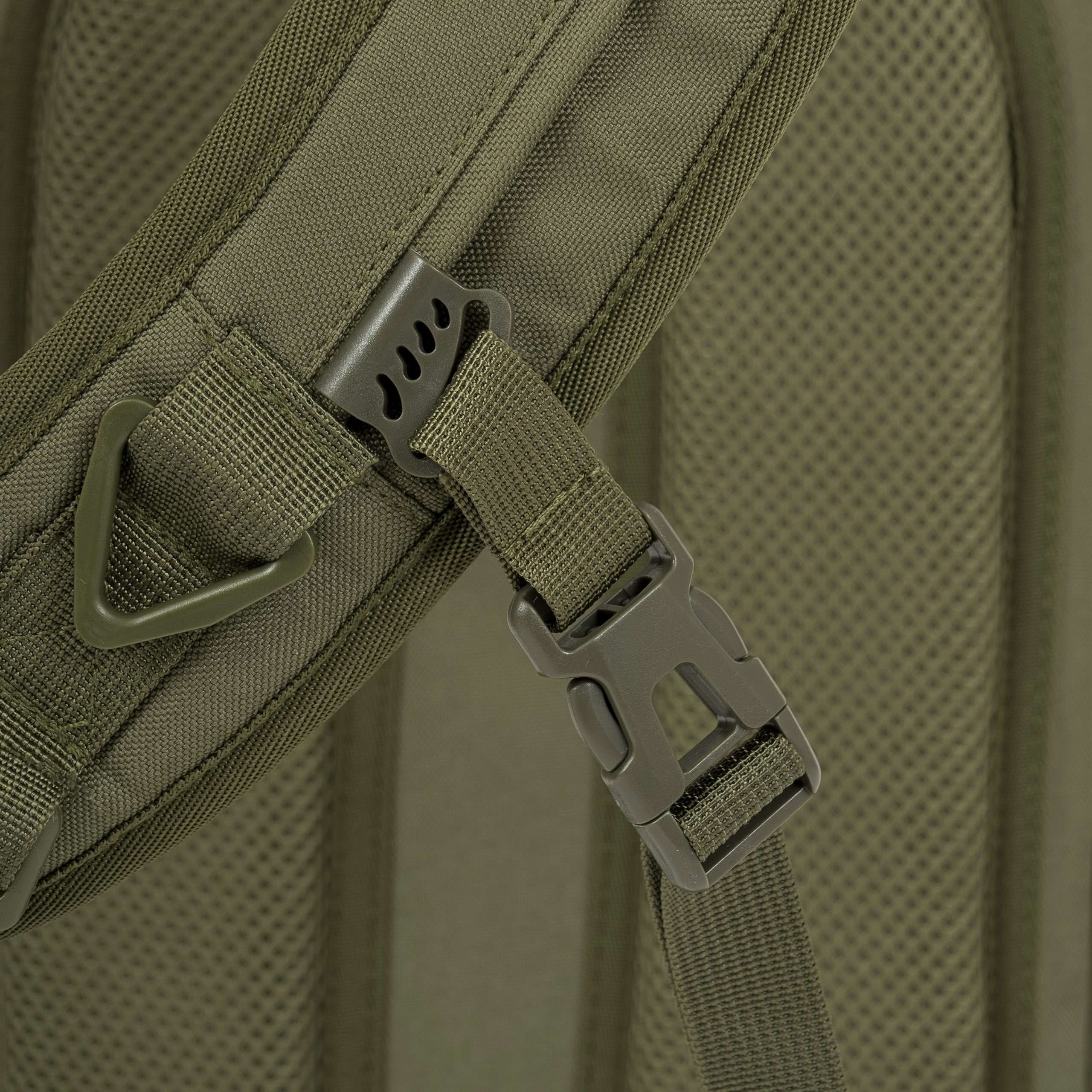 La parte posteriore dello zaino è ampiamente imbottita con rete 3D. La tracolla è regolabile, dotata di un triangolo in plastica e di una piccola cinghia di stabilizzazione regolabile in altezza con fibbia. Ai lati dello zaino sono presenti tasche elastiche per bottiglie e piccoli oggetti. La parte superiore è dotata di una maniglia per il trasporto. Nella parte anteriore sono presenti due file di passanti MOLLE/PALS, due pannelli in VELCRO e una tasca superiore per i documenti. Lo scomparto principale è accessibile tramite una cerniera a doppio cursore. All'interno si trovano una piccola tasca staccabile, uno scomparto con bordo elastico per la sacca idrica e una grande tasca in rete.