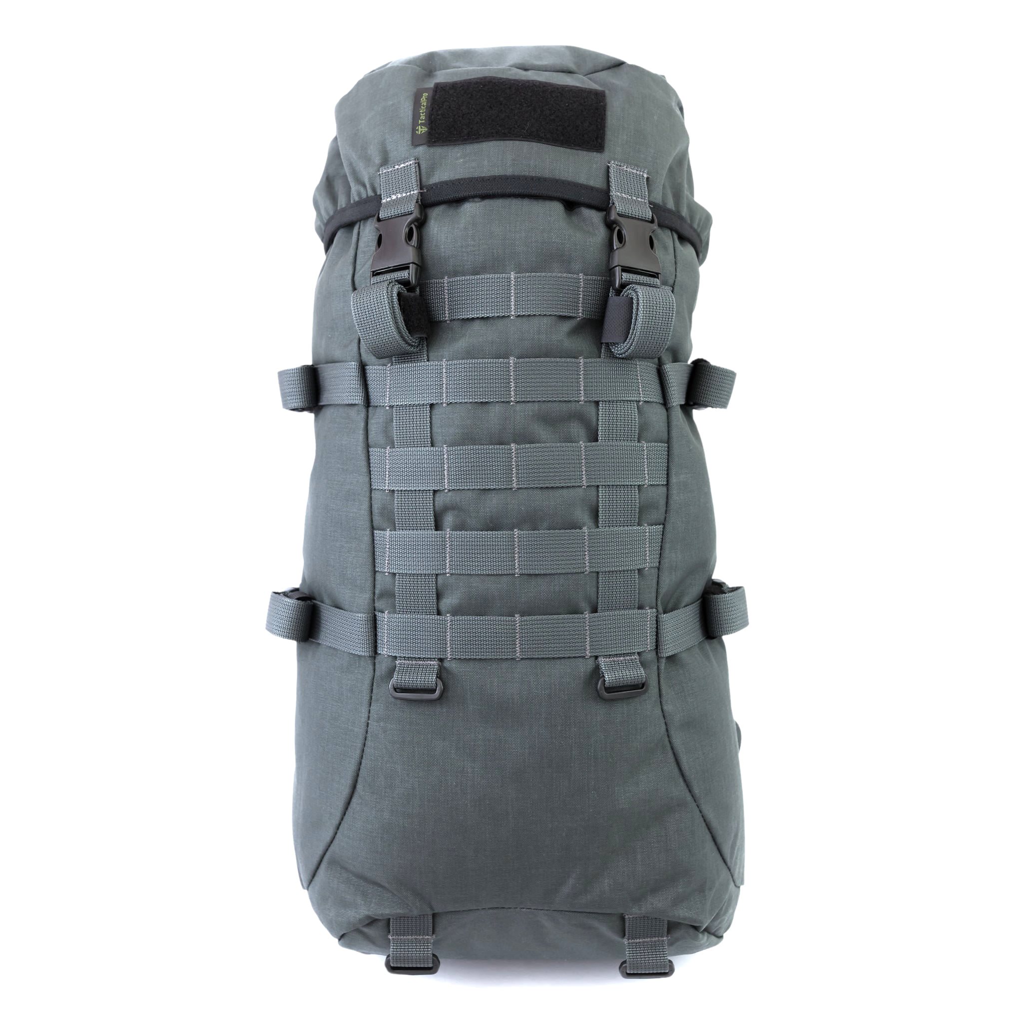 Zaino EDC leggero. Il suo principale vantaggio è il sistema di trasporto molto confortevole, la manica interna regolabile che consente di aumentare il volume e la possibilità di fissare all'esterno attrezzature aggiuntive grazie al sistema modulare MOLLE/PALS e a diverse passanti in plastica. Lo zaino è realizzato in materiale di marca Cordura 1000D, che rispetto ad alternative come il nylon o il poliestere comuni offre un peso molto ridotto pur mantenendo un'elevata resistenza meccanica e all'abrasione. Il volume dello zaino è ideale per l'uso quotidiano durante le escursioni, il bushcraft e in città.