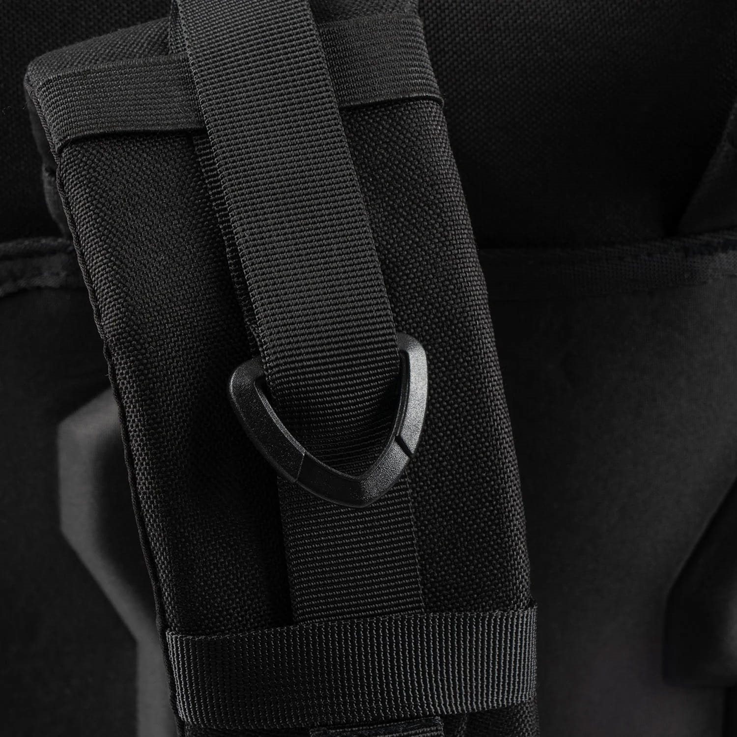 Gli spallacci dello zaino sono anatomicamente curvi, abbastanza imbottiti e dotati di una cinghia pettorale elastica con possibilità di regolazione in altezza. La schiena è imbottita su tutta la superficie, nella parte inferiore della schiena si trova un pettorale parzialmente imbottito e rimovibile, chiuso con una fibbia in plastica. Ai lati si trovano due cinghie di compressione e tasche elastiche destinate a contenere bottiglie o attrezzature di dimensioni simili. Queste tasche sono dotate di chiusura con cordino elastico e fermo in plastica.