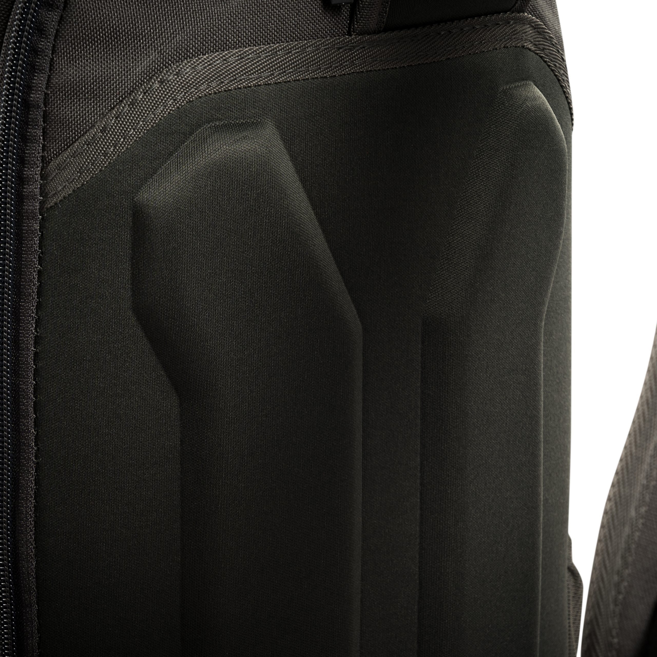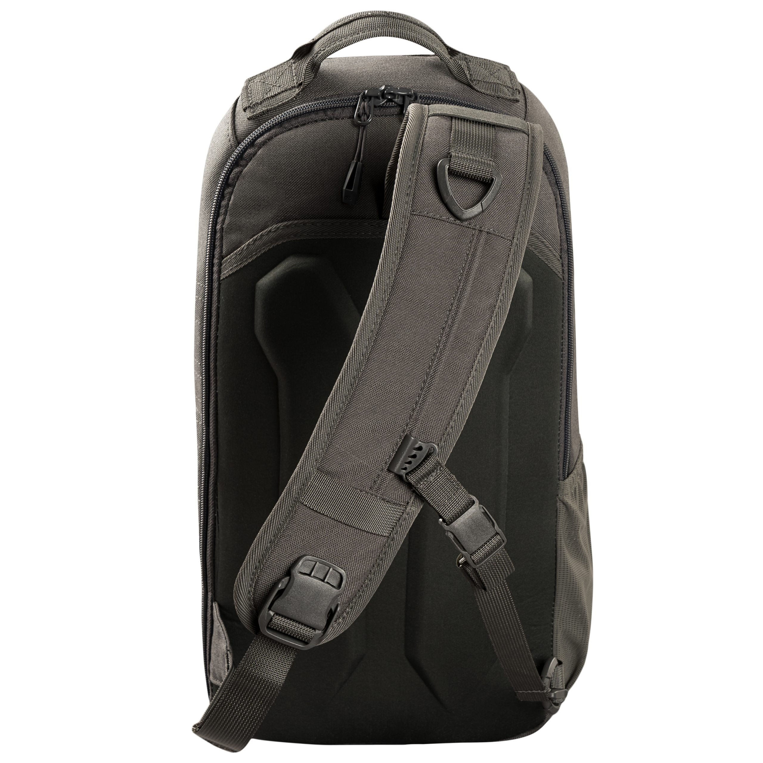La tracolla è regolabile, piacevolmente imbottita, dotata di un anello a D in plastica e di una cinghia laterale di stabilizzazione con fibbia. La parte posteriore dello zaino è piacevolmente imbottita con schiuma, compreso il canale centrale per alleggerire la colonna vertebrale. Sul lato è presente una tasca destinata al trasporto di una bottiglia d'acqua. La parte anteriore dello zaino è dotata di due scomparti. Quello superiore è perfetto per riporre occhiali e oggetti di valore simili, quello inferiore dispone di un organizer rimovibile e di una tasca in rete. Lo scomparto principale è accessibile tramite una cerniera a doppio cursore e al suo interno si trovano due pannelli separati in velcro, due scomparti divisi in rete e una tasca per riporre un laptop fino a 13 pollici. Questa tasca è inoltre rivestita con un morbido tessuto non tessuto adatto per fissare ulteriori inserti in velcro. Il fondo dello zaino è liscio.