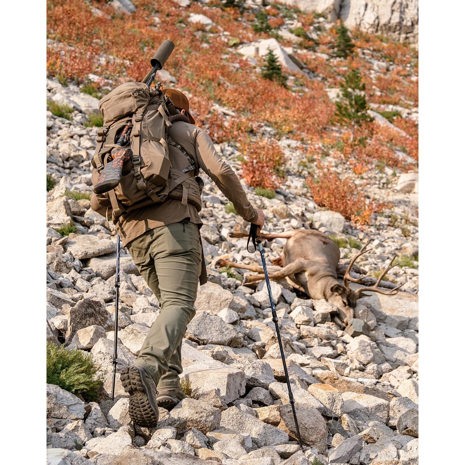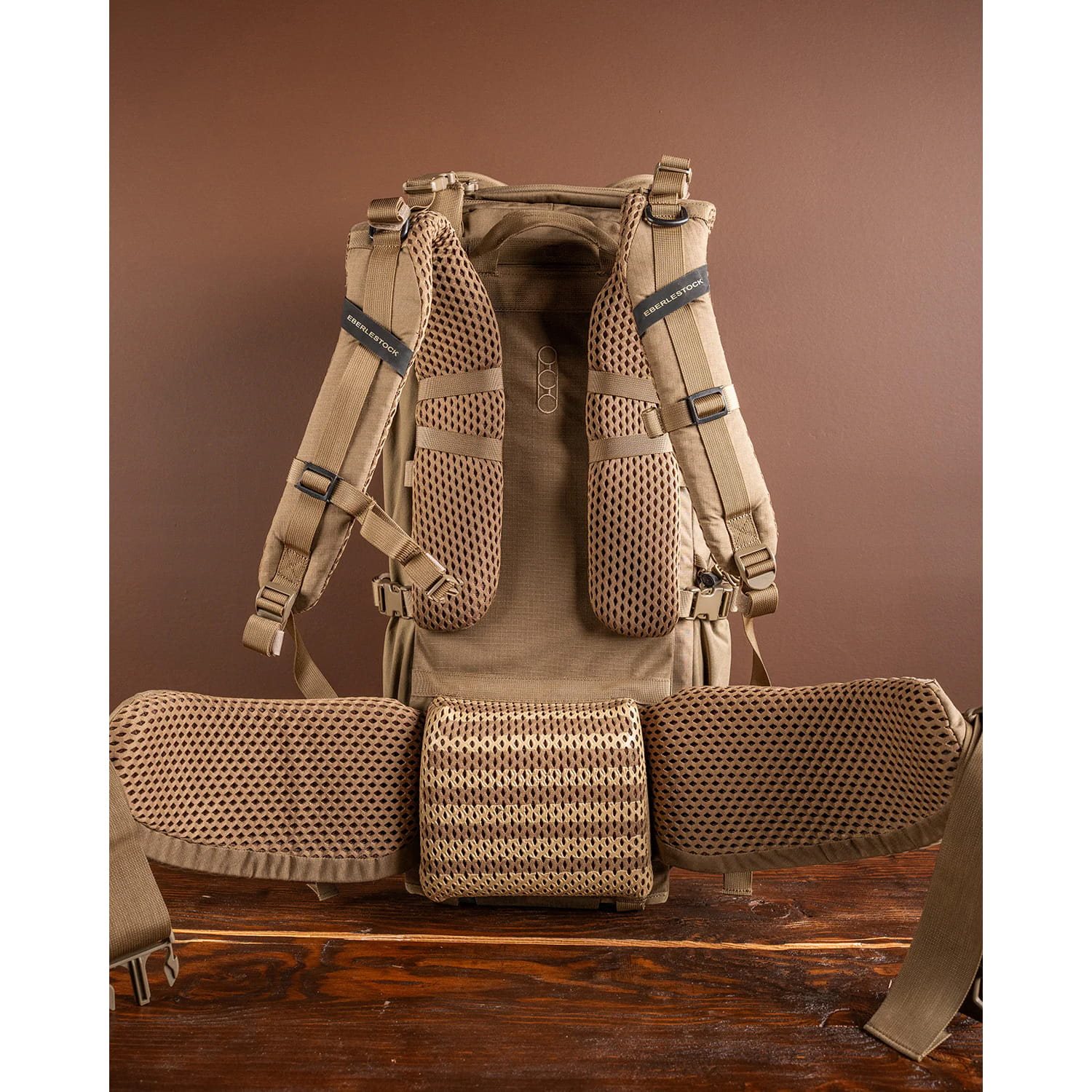 Il sistema di trasporto in alluminio è sagomato per garantire il massimo. Se necessario, è possibile rimuovere l'intero zaino e utilizzare il sistema di trasporto separatamente o in combinazione con altri accessori compatibili della linea EMOD HUNT del marchio EBERLESTOCK. Gli spallacci sono dotati di fermi stabilizzatori, cinturino elastico sul petto e possono essere regolati in altezza in base alle esigenze dell'utente. Il marsupio è dotato di un'imbottitura molto robusta rivestita in silicone che impedisce lo scivolamento indesiderato dello zaino durante i movimenti dinamici. Anche i fianchi dello zaino sono fortemente imbottiti e si chiudono con robuste fibbie in plastica.