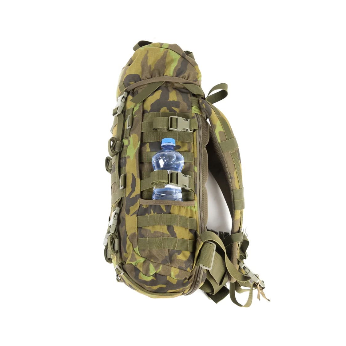 L'intero zaino è dotato di un sistema di aggancio MOLLE per fissare tasche e accessori aggiuntivi. I lati dello zaino sono stati progettati per fissare saldamente gli oggetti che possono essere inseriti nelle tasche laterali, coperti con la patta in Cordura e fissati con una cinghia a tre punte (ad esempio thermos, bottiglia in PET, bastoncini telescopici, ecc.). Sul fondo dello zaino sono presenti ulteriori cinghie per fissare il materassino o il sacco a pelo. La lunghezza in eccesso delle cinghie è fissata da un "fissatore di cinghie" che ne impedisce il movimento libero.
