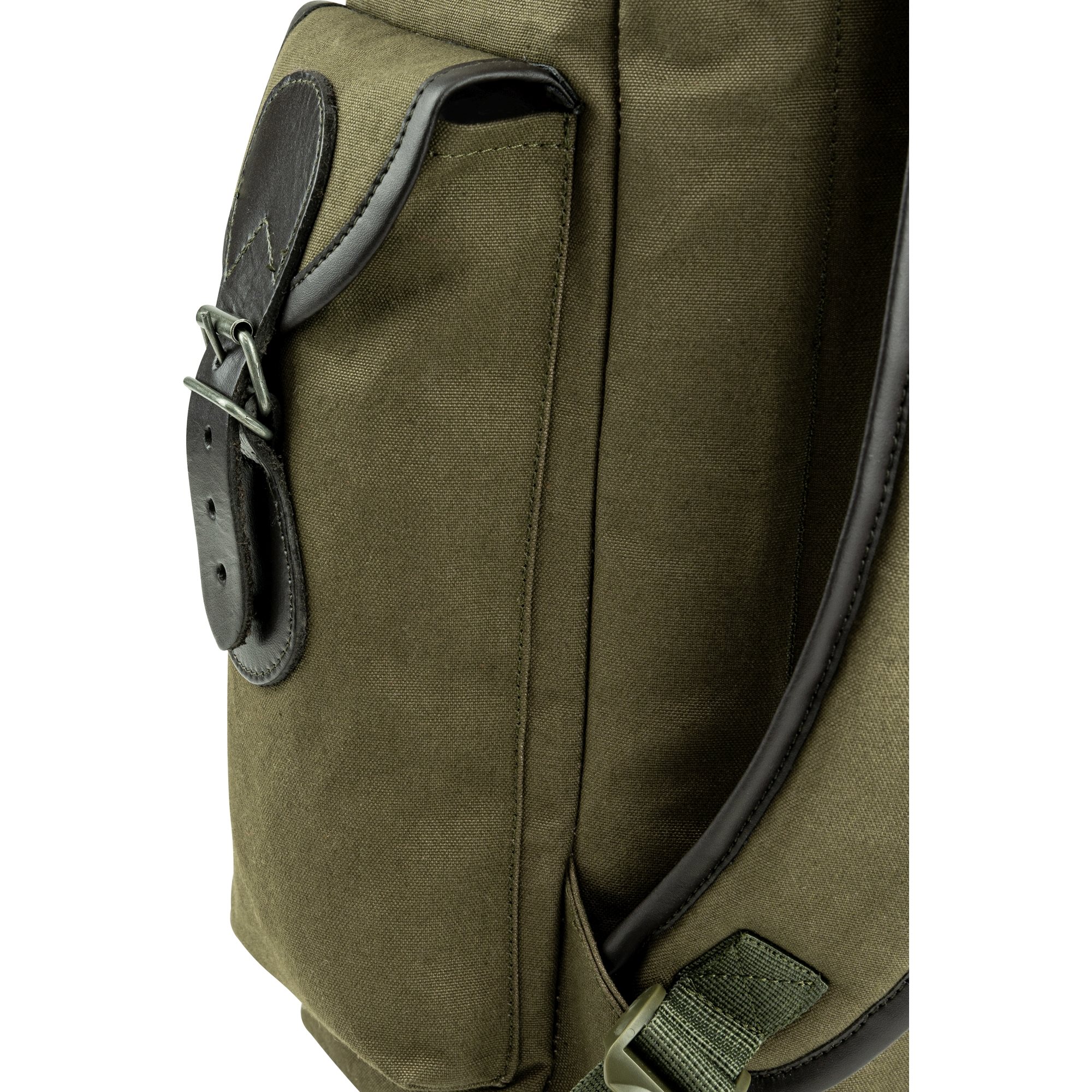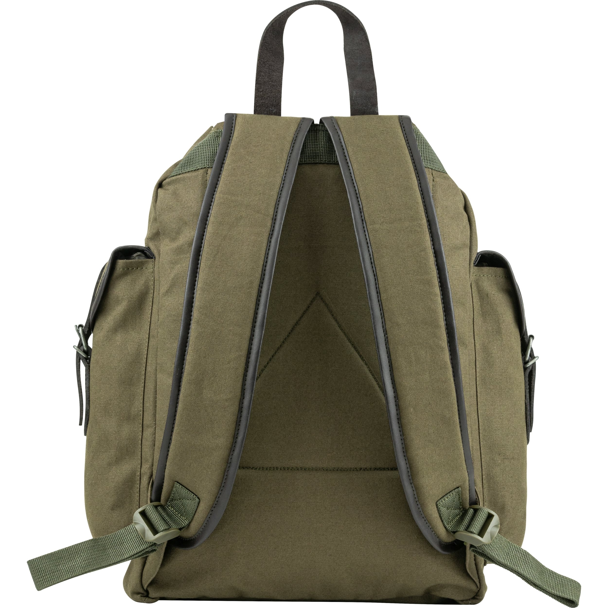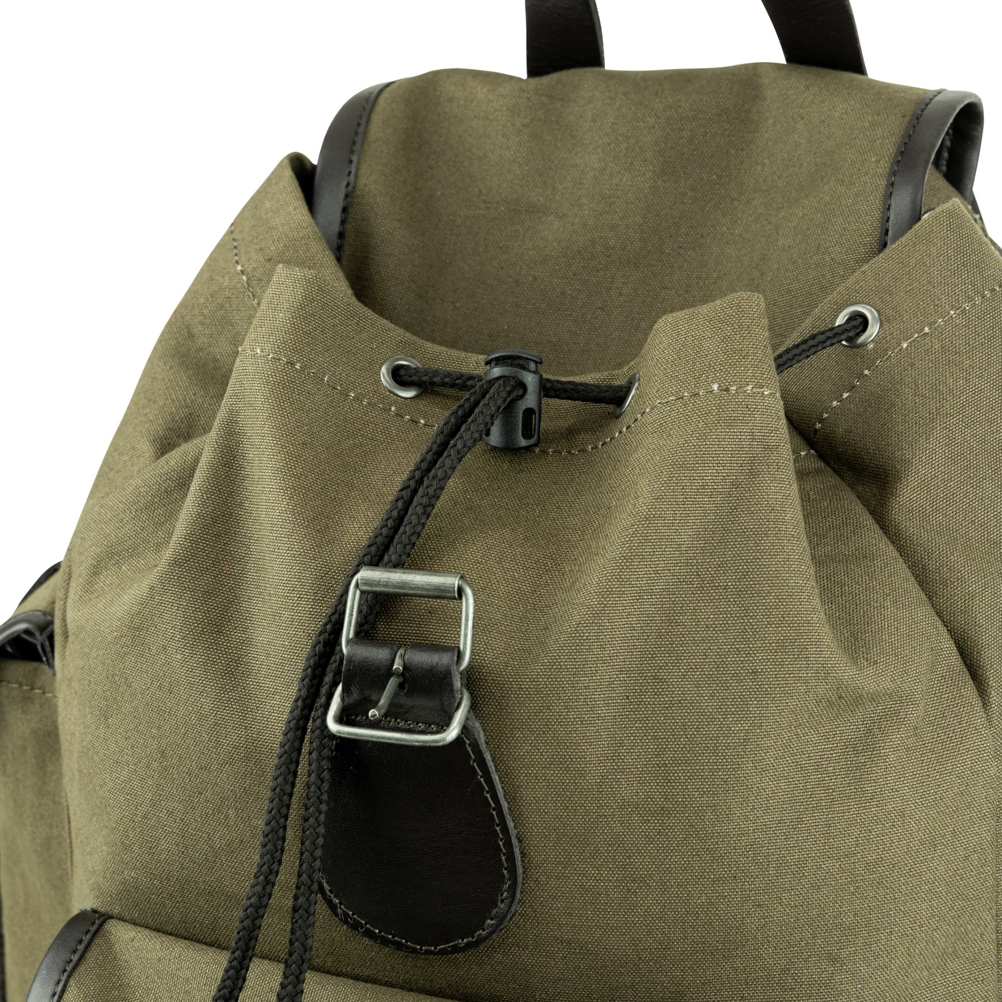 Gli spallacci regolabili sono sufficientemente imbottiti e garantiscono il massimo comfort, sia che si tratti di un'escursione nella natura o di una semplice passeggiata. I bordi delle cinghie sono rifiniti in pelle. Il bordo in pelle è presente anche sulle tasche e sulla chiusura. Anche la maniglia è in pelle, consentendo di trasportare lo zaino a mano o di agganciarlo alla cintura. rivestiti in pelle. Il bordo in pelle si trova anche sulle tasche e sulla chiusura. Anche il manico è in pelle, il che consente di trasportare lo zaino a mano o di appenderlo. Tutte le tasche si chiudono con fibbie metalliche. La tasca principale è dotata di un cordoncino con cursore in plastica sul bordo superiore. Due tasche sui lati.