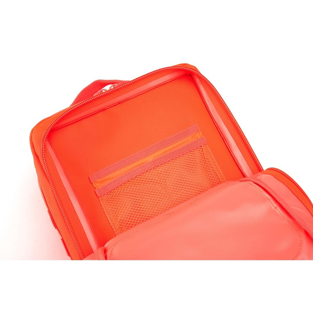 Per riporre l'attrezzatura sono disponibili due ampi scomparti e due tasche più piccole. Gli scomparti e le tasche sono accessibili tramite cerniere a doppio cursore dotate di tiretti. La tasca superiore più piccola è senza divisori, mentre quella inferiore contiene un pratico organizer. All'interno dello scomparto principale sono presenti diverse tasche per riporre documenti e altri piccoli oggetti. Sul fondo si trovano altre due cinghie, ideali per fissare, ad esempio, una giacca a vento leggera o un materassino.