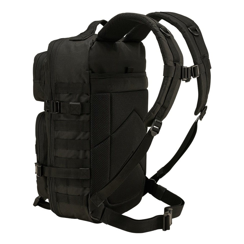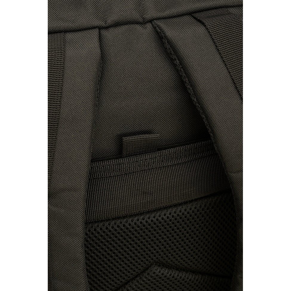 La parte posteriore dello zaino è leggermente imbottita, contiene una tasca adatta per inserire una sacca idratante e nella parte superiore è dotata di una maniglia per un facile trasporto. Gli spallacci sono regolabili in altezza, anatomicamente sagomati, imbottiti, dotati di rete 3D e cinturino elastico sul petto con chiusura in plastica fastex. Ai lati dello zaino è presente un'ampia trama MOLLE/PALS che serve per fissare tasche compatibili e altre attrezzature. Oltre alla trama, sul lato sono presenti anche due cinghie di compressione.