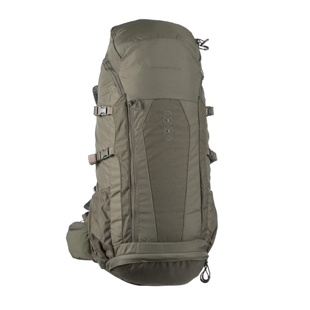 I lati dello zaino sono piuttosto semplici, con due cinghie di compressione per fissare attrezzature aggiuntive e tasche parzialmente elastiche che possono essere chiuse con un cordino con fermo in plastica. Quasi tutta la parte anteriore è occupata da una tasca elastica piatta con accesso tramite cerniera con un robusto tiretto. Il coperchio è dotato di uno spazio più piccolo per riporre piccoli oggetti. Questo spazio contiene una tasca più piccola in rete chiusa con cerniera. La cerniera inferiore conduce all'interno dello zaino.