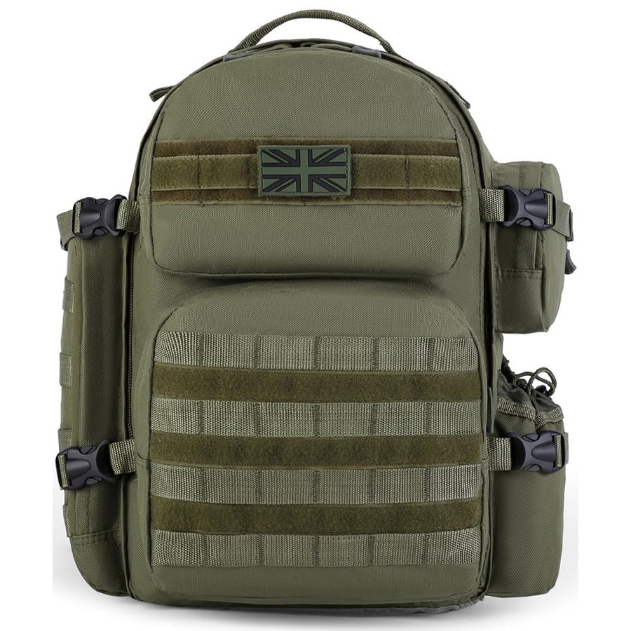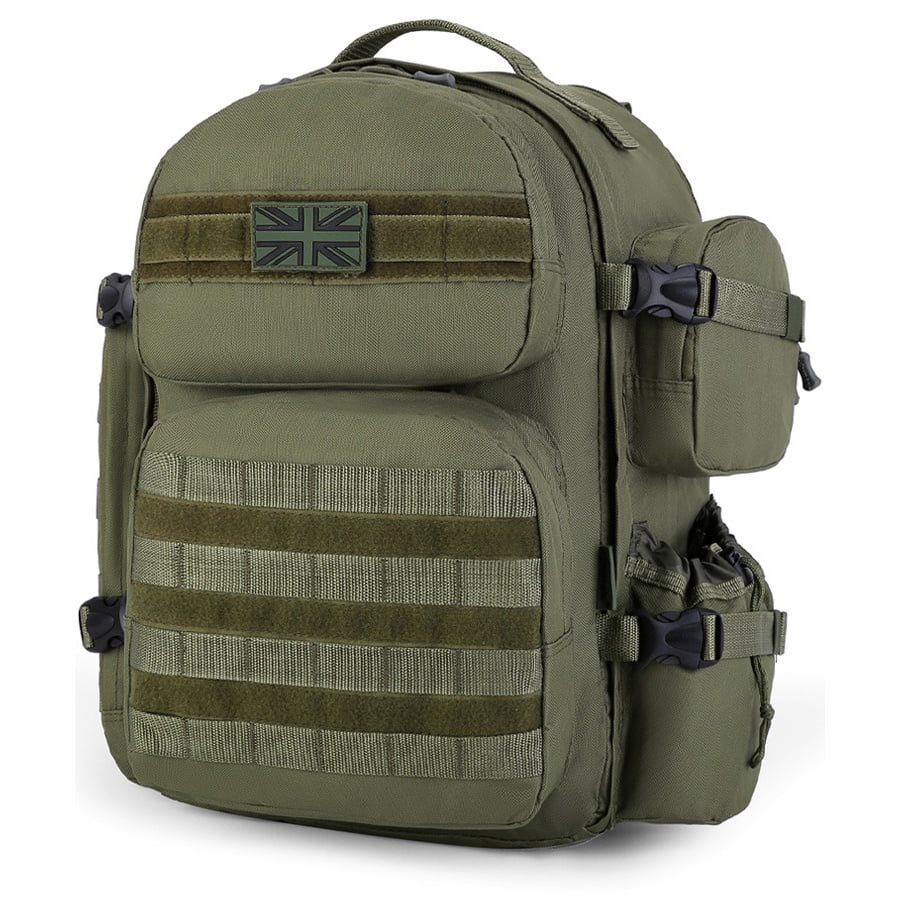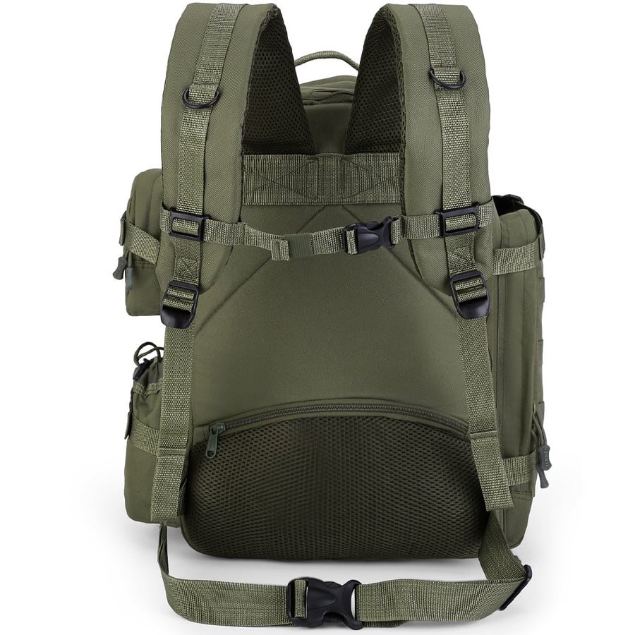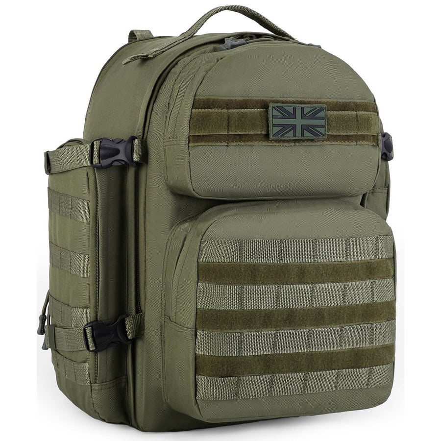 Zaino espandibile in volume compatibile con il sistema di aggancio modulare standard MOLLE/PALS. La sua capacità base è di circa 35 litri, ma aprendo la cerniera posteriore si ottengono altri 10 litri circa di spazio di stivaggio. Lo zaino è realizzato in resistente materiale poliestere con trattamento idrorepellente.