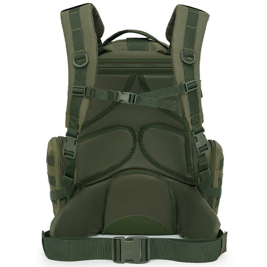 Zaino capiente per 3 giorni con cinghie MOLLE sulle tasche laterali e nella parte anteriore. Schienale imbottito con ventilazione, spallacci imbottiti, cintura lombare imbottita rimovibile. Pannello in velcro. Materiale: 600D Tac-Poly. Ulteriori informazioni