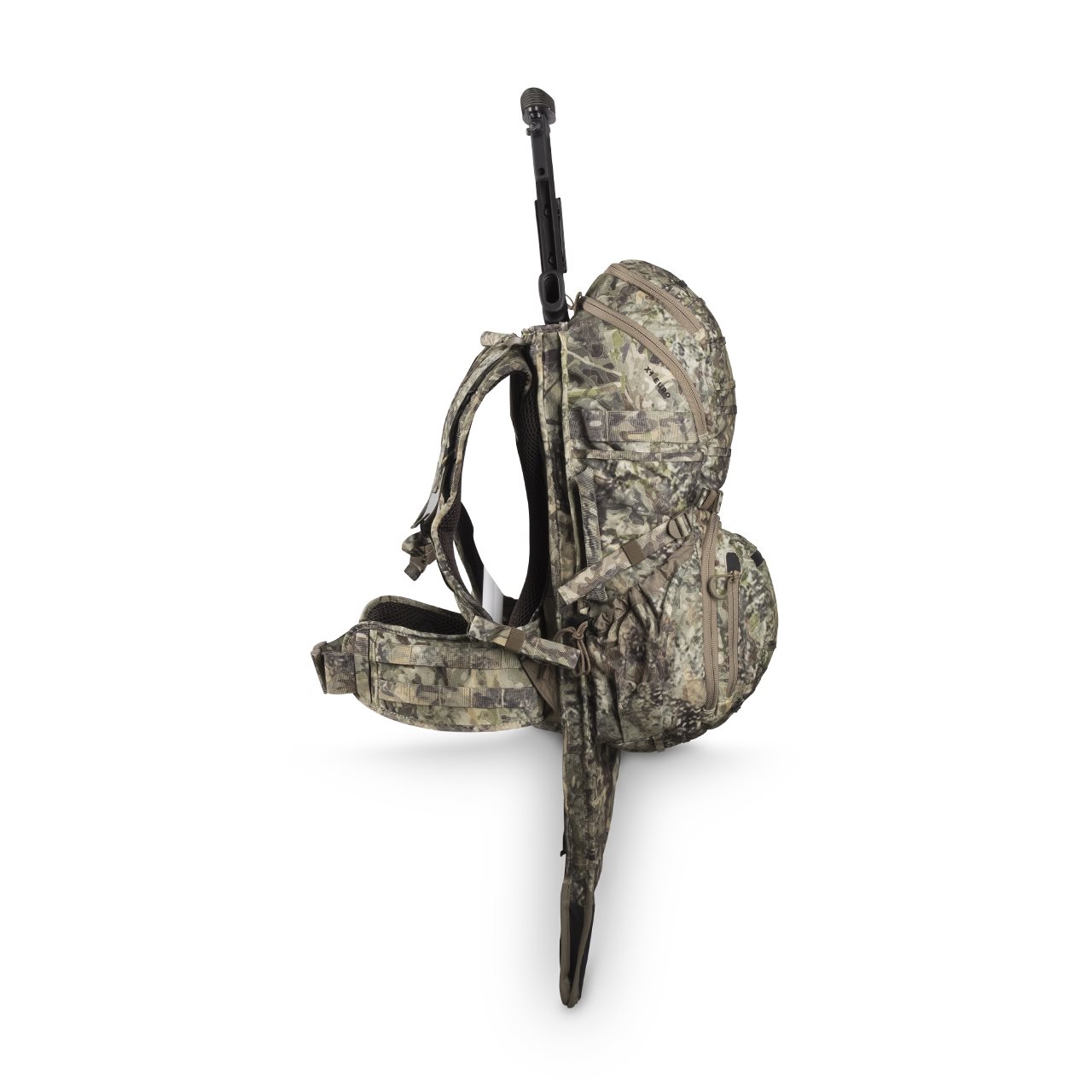 Moderno zaino da caccia con telaio in policarbonato e custodia integrata per fucile. Scomparto principale divisibile con apertura superiore e frontale, numerose tasche esterne e sistema di aggancio modulare PALS/MOLLE che offre molteplici possibilità di stivaggio dell'attrezzatura necessaria.